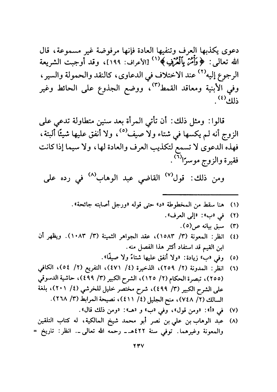(¬٤) انظر: المعونة (٣/ ١٥٨٣)، عقد الجواهر الثمينة (٣/ ١٠٨٣). ويظهر أن ابن القيم قد استفاد أكثر هذا الفصل منه.