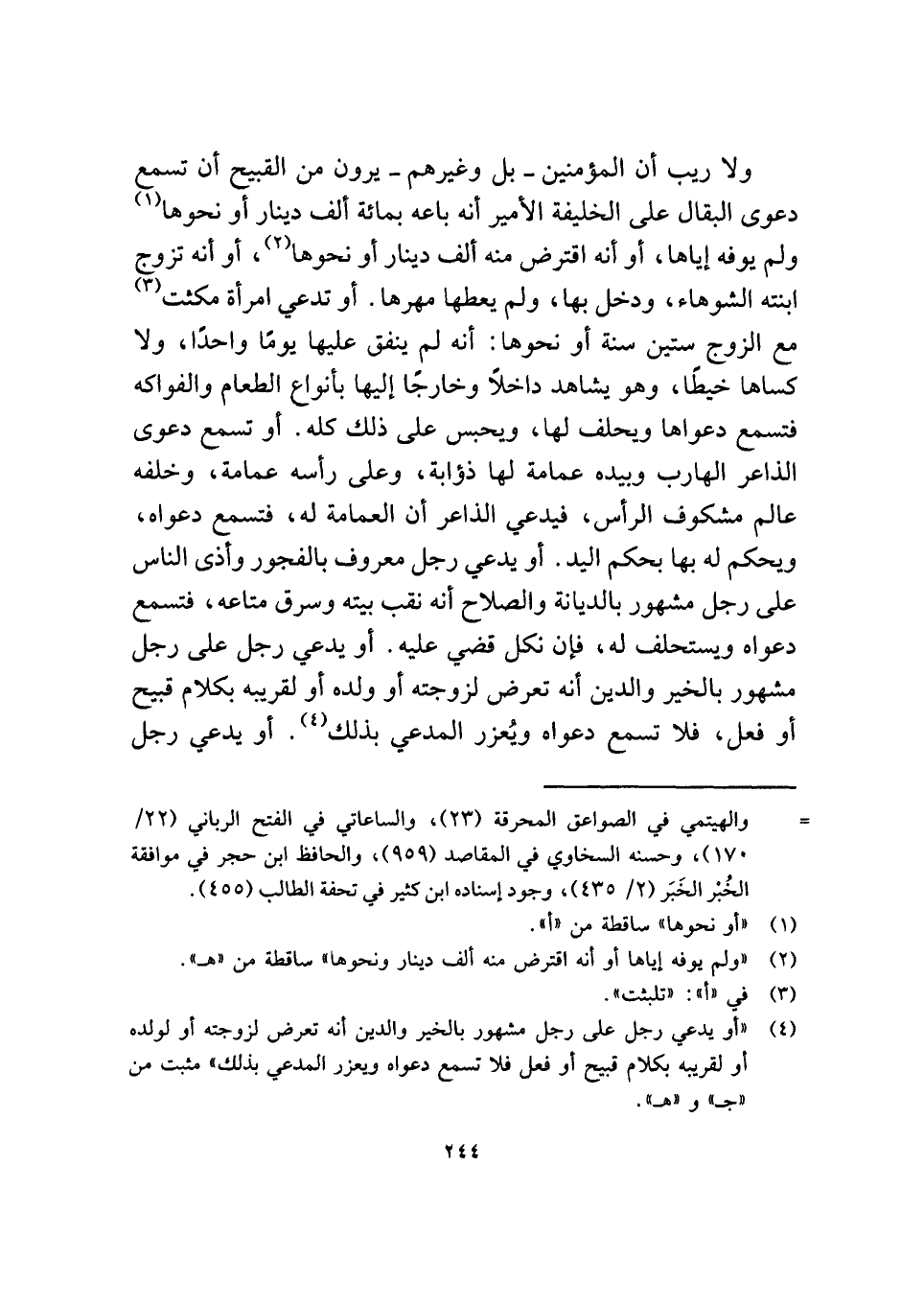 (¬٤) "أو يدعي رجل على رجل مشهور بالخير والدين أنه تعرض لزوجته أو لولده أو لقريبه بكلام قبيح أو فعل فلا تسمع دعواه ويعزر المدعي بذلك" مثبت من "جـ" و"هـ".