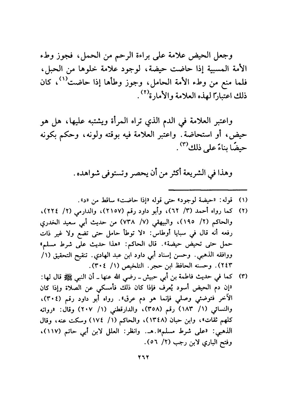 (¬٣) كما في حديث فاطمة بنت أبي حبيش - رضي الله عنها - أن النبي - صلى الله عليه وسلم - قال لها: "إن دم الحيض أسود يُعرف فإذا كان ذلك فأمسكي عن الصلاة وإذا كان الآخر فتوضئي وصلي فإنما هو دم عرق". رواه أبو داود رقم (٣٠٤)، والنسائي (١/ ١٨٣) رقم (٣٥٨)، والدارقطني (١/ ٢٠٧) وقال: "رواته كلهم ثقات"، وابن حبان (١٣٤٨)، والحاكم (١/ ١٧٤) وسكت عنه، وقال الذهبي: "على شرط مسلم" ا. هـ. وانظر: العلل لابن أبي حاتم (١١٧)، وفتح الباري لابن رجب (٢/ ٥٦).
