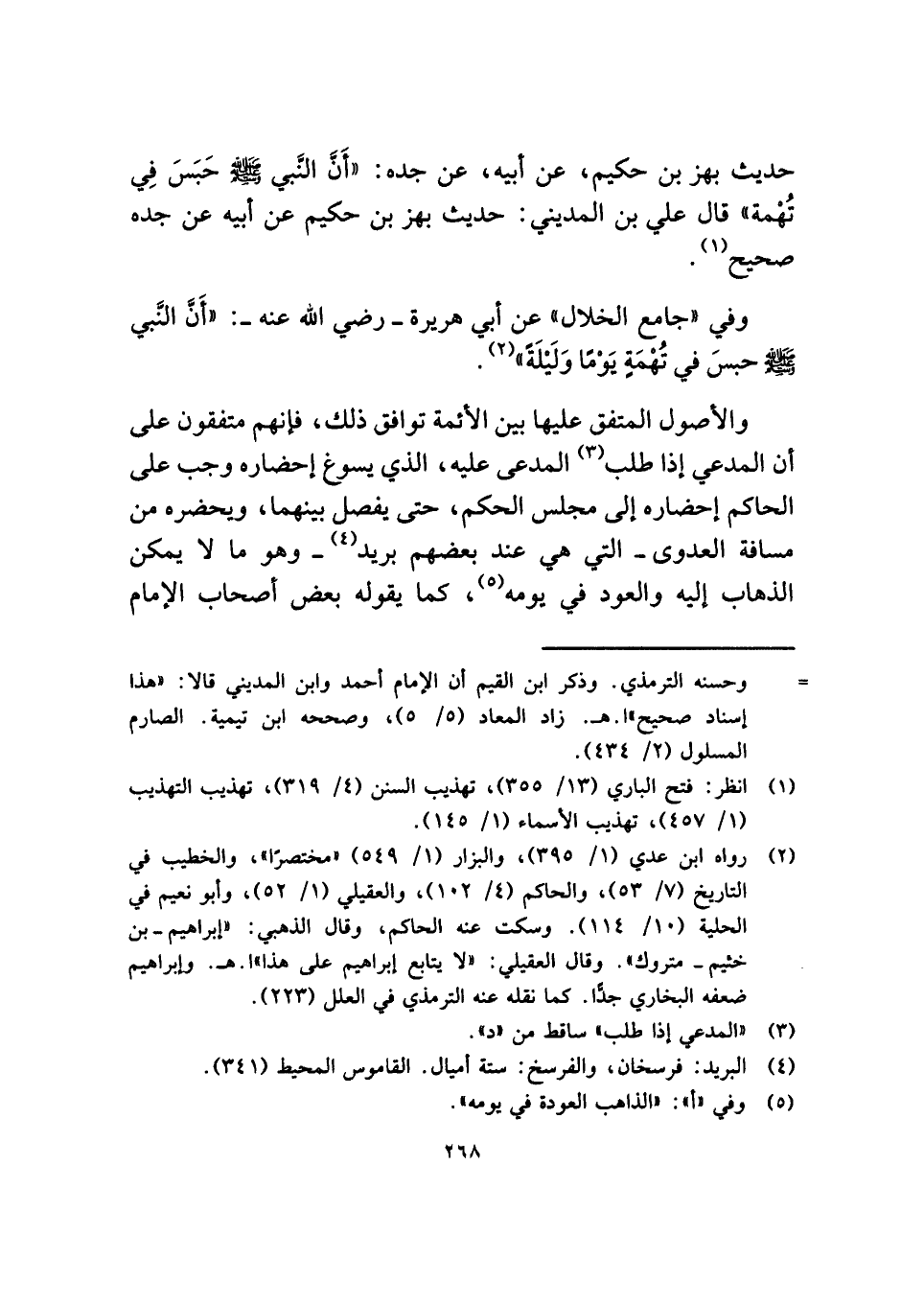 حديث بهز بن حكيم، عن أبيه، عن جده: "أَنَّ النَّبي - صلى الله عليه وسلم - حَبَسَ فِي تُهْمة" قال علي بن المديني: حديث بهز بن حكيم عن أبيه عن جده صحيح (¬١).
