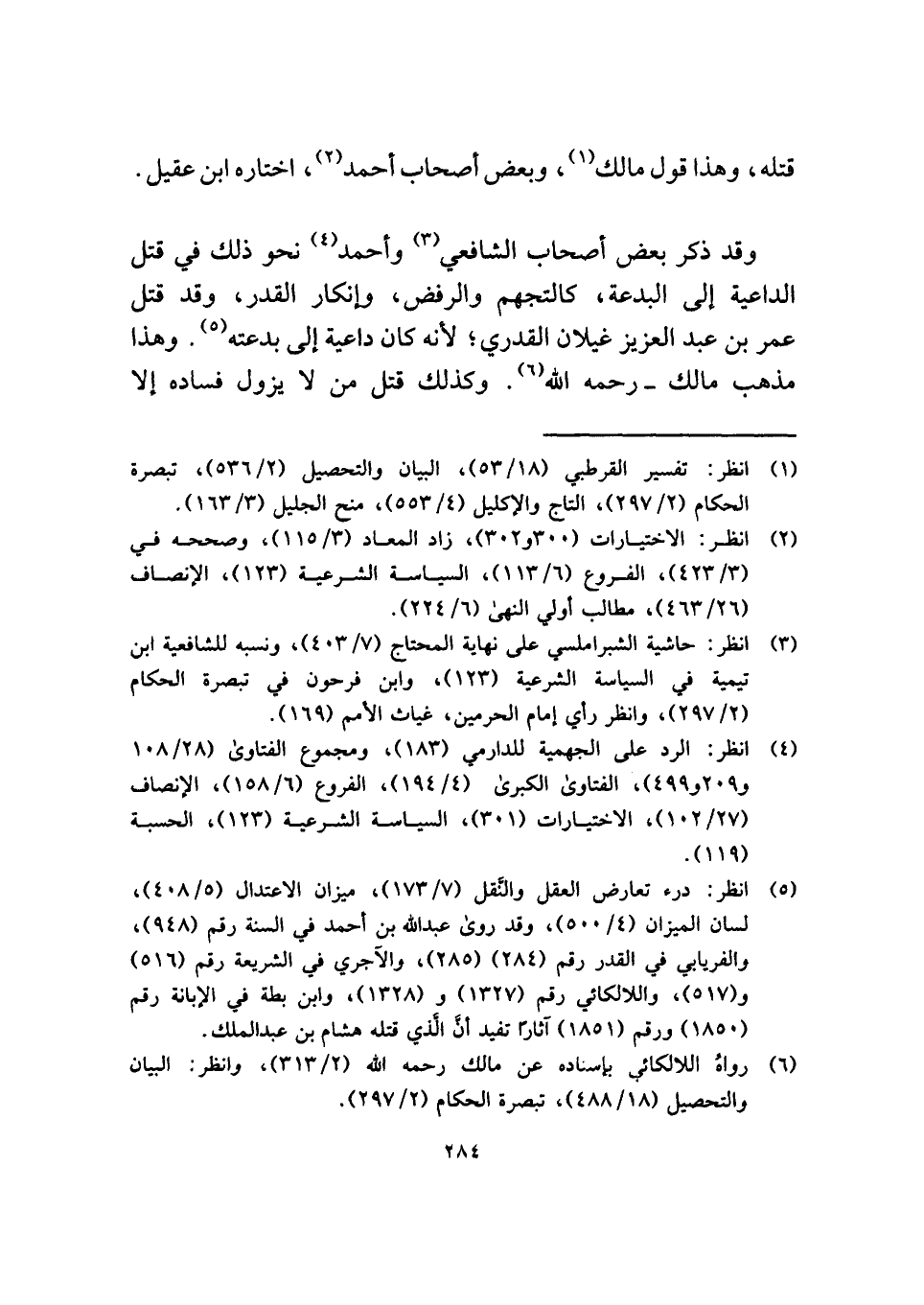 وقد ذكر بعض أصحاب الشافعي (¬٣) وأحمد (¬٤) نحو ذلك في قتل الداعية إلى البدعة، كالتجهم والرفض، وإنكار القدر، وقد قتل عمر بن عبد العزيز غيلان القدري؛ لأنه كان داعية إلى بدعته (¬٥). وهذا مذهب مالك - رحمه الله (¬٦). وكذلك قتل من لا يزول فساده إلا