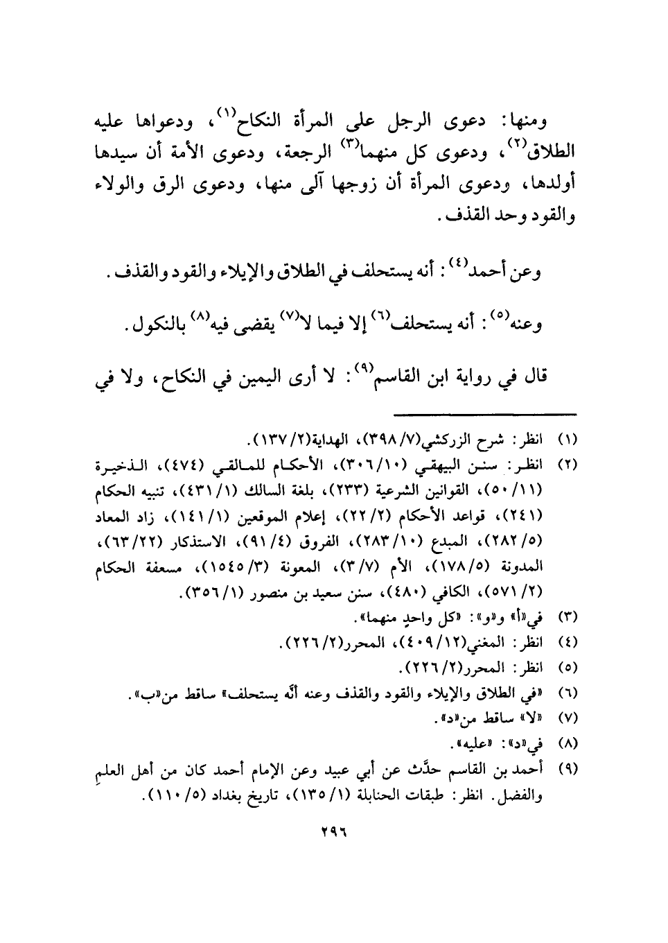 (¬٦) "في الطلاق والإيلاء والقود والقذف وعنه أنَّه يستحلف" ساقط من "ب".