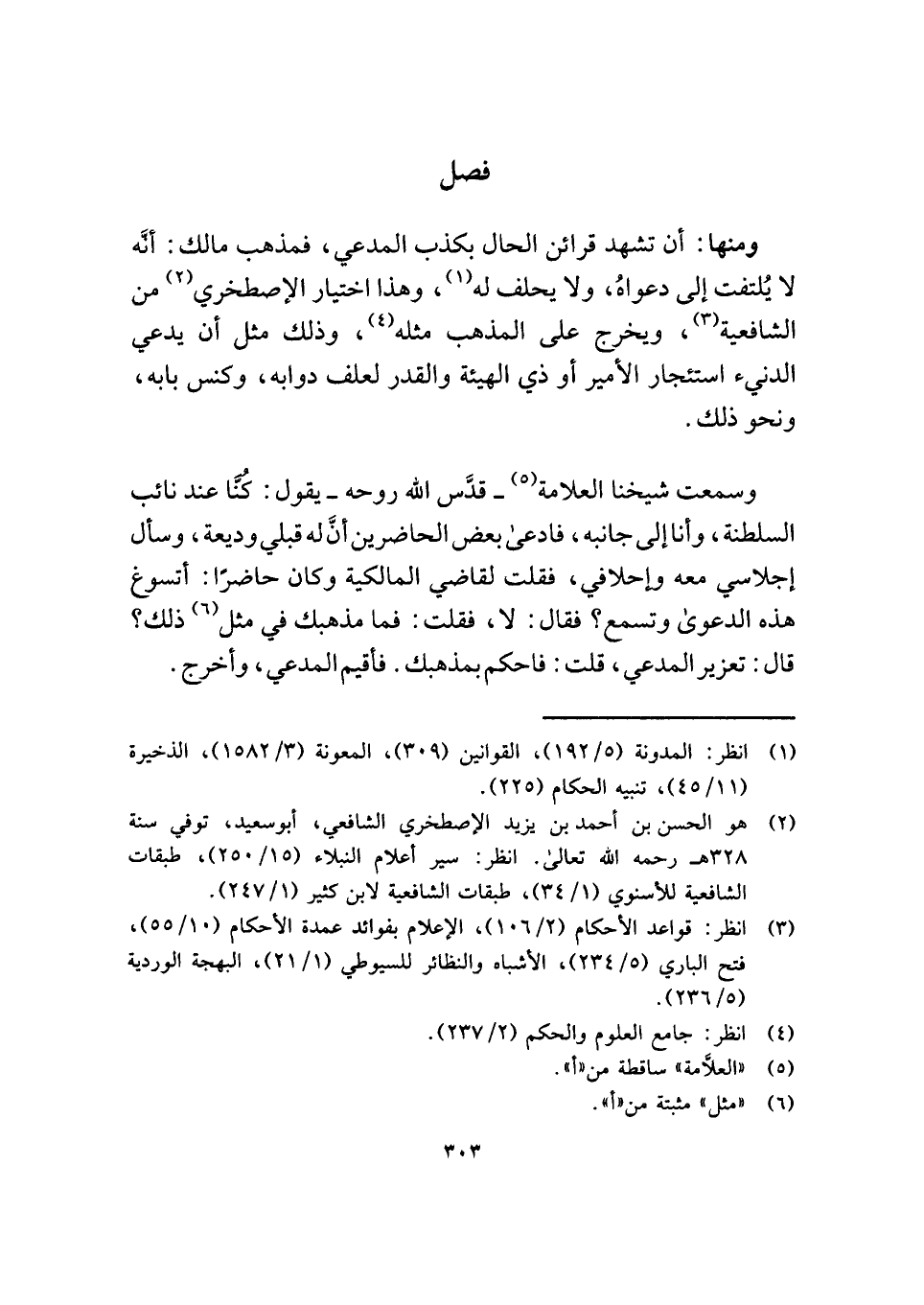 وسمعت شيخنا العلامة (¬٥) - قدَّس الله روحه - يقول: كُنَّا عند نائب السلطنة، وأنا إلى جانبه، فادعى بعض الحاضرين أنَّ له قبلي وديعة، وسأل إجلاسي معه وإحلافي، فقلت لقاضي المالكية وكان حاضرًا: أتسوغ هذه الدعوى وتسمع؟ فقال: لا، فقلت: فما مذهبك في مثل (¬٦) ذلك؟ قال: تعزير المدعي، قلت: فاحكم بمذهبك. فأقيم المدعي، وأخرج.