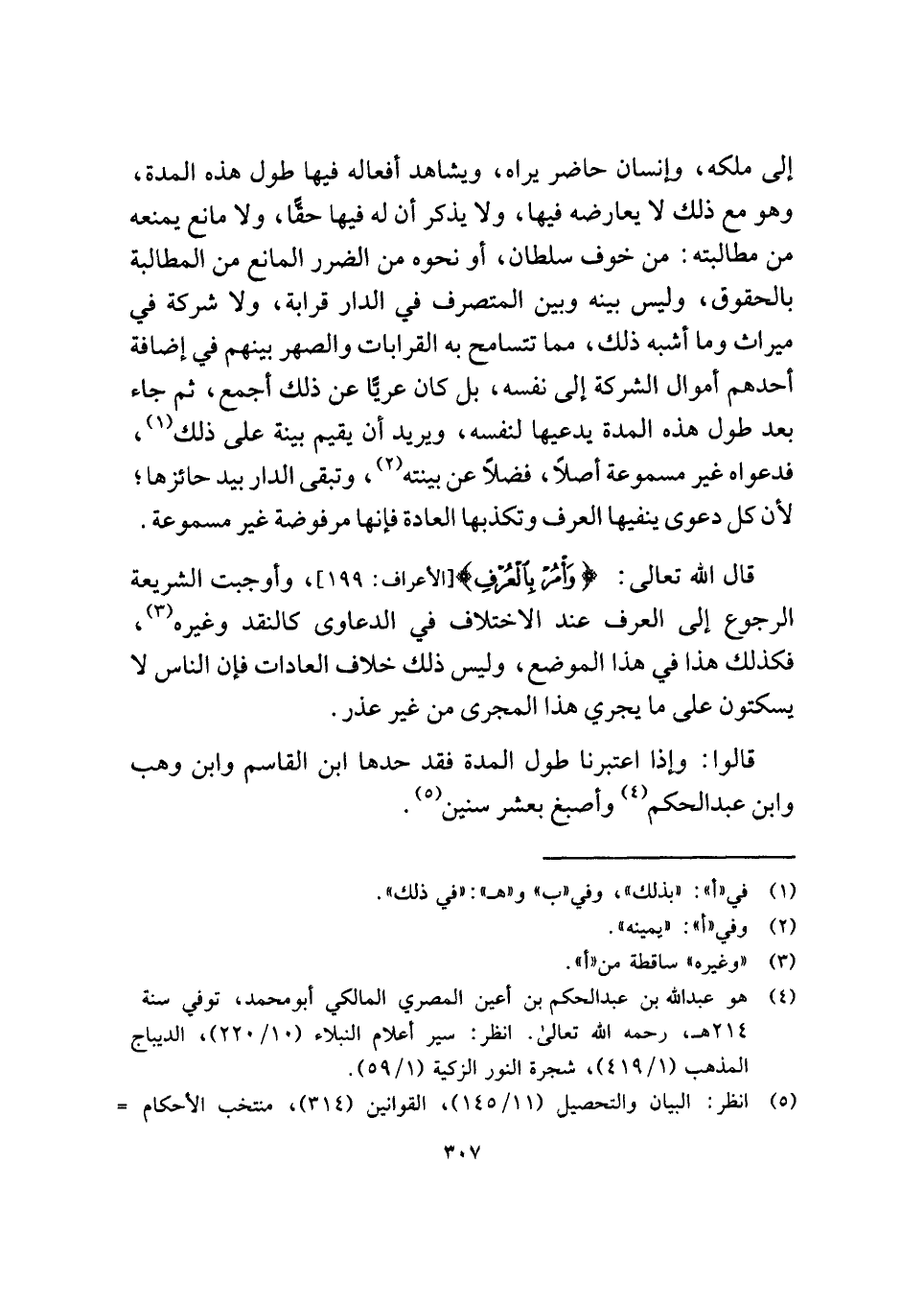 قال الله تعالى: {وَأْمُرْ بِالْعُرْفِ} [الأعراف: ١٩٩]، وأوجبت الشريعة الرجوع إلى العرف عند الاختلاف في الدعاوى كالنقد وغيره (¬٣)، فكذلك هذا في هذا الموضع، وليس ذلك خلاف العادات فإن الناس لا يسكتون على ما يجري هذا المجرى من غير عذر.