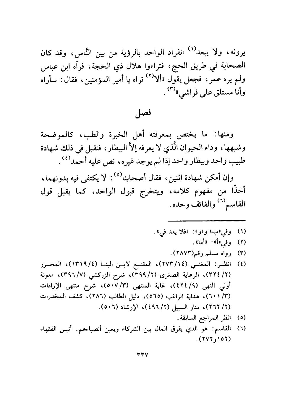ومنها: ما يختص بمعرفته أهل الخبرة والطب، كالموضحة وشبهها، وداء الحيوان الَّذي لا يعرفه إلَّا البيطار، فتقبل في ذلك شهادة طبيب واحد وبيطار واحد إذا لم يوجد غيره، نص عليه أحمد (¬٤).