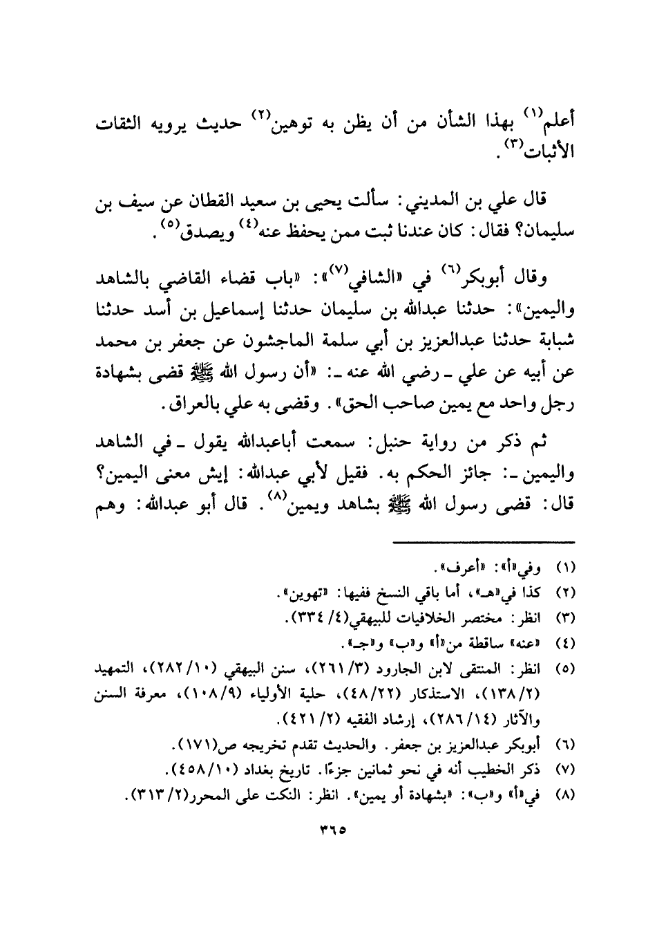 (¬٨) في "أ" و"ب": "بشهادة أو يمين". انظر: النكت على المحرر (٢/ ٣١٣).
