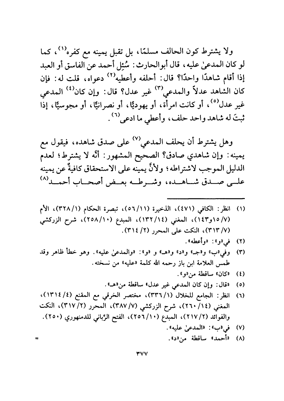 (¬٣) وفي "ب" و"جـ" و"د" و"هـ" و"و": "والمدعى عليه". وهو خطأ ظاهر وقد طمس العلامة ابن باز رحمه الله كلمة "عليه" من نسخته.