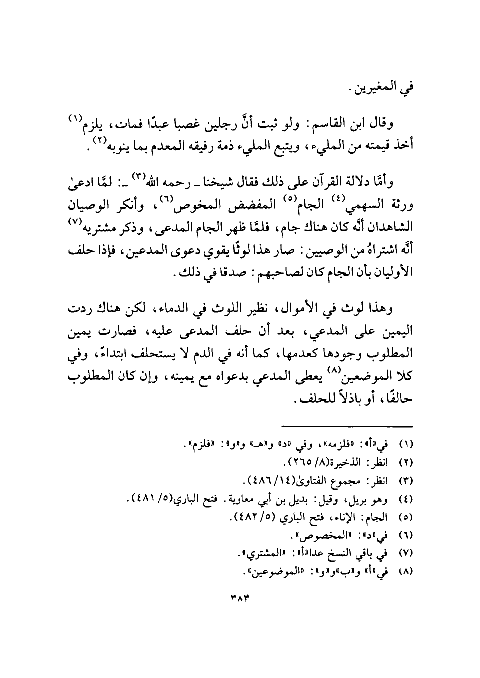 (¬٢) انظر: الذخيرة (٨/ ٢٦٥).