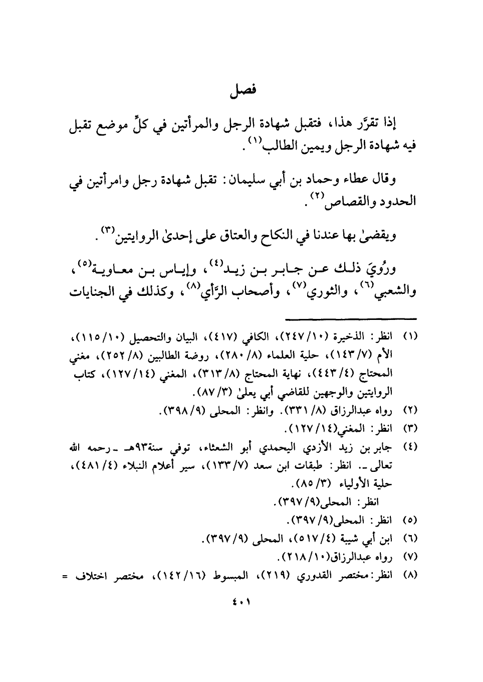 ورُويَ ذلك عن جابر بن زيد (¬٤)، وإياس بن معاوية (¬٥)، والشعبي (¬٦)، والثوري (¬٧)، وأصحاب الرَّأي (¬٨)، وكذلك في الجنايات