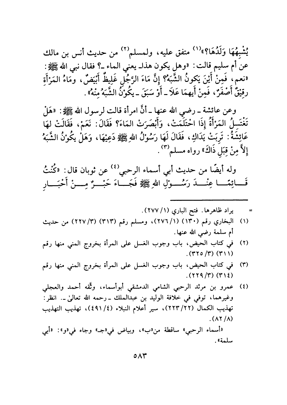 (¬١) البخاري رقم (١٣٠) (١/ ٢٧٦)، ومسلم رقم (٣١٣) (٣/ ٢٢٧) من حديث أم سلمة رضي الله عنها.