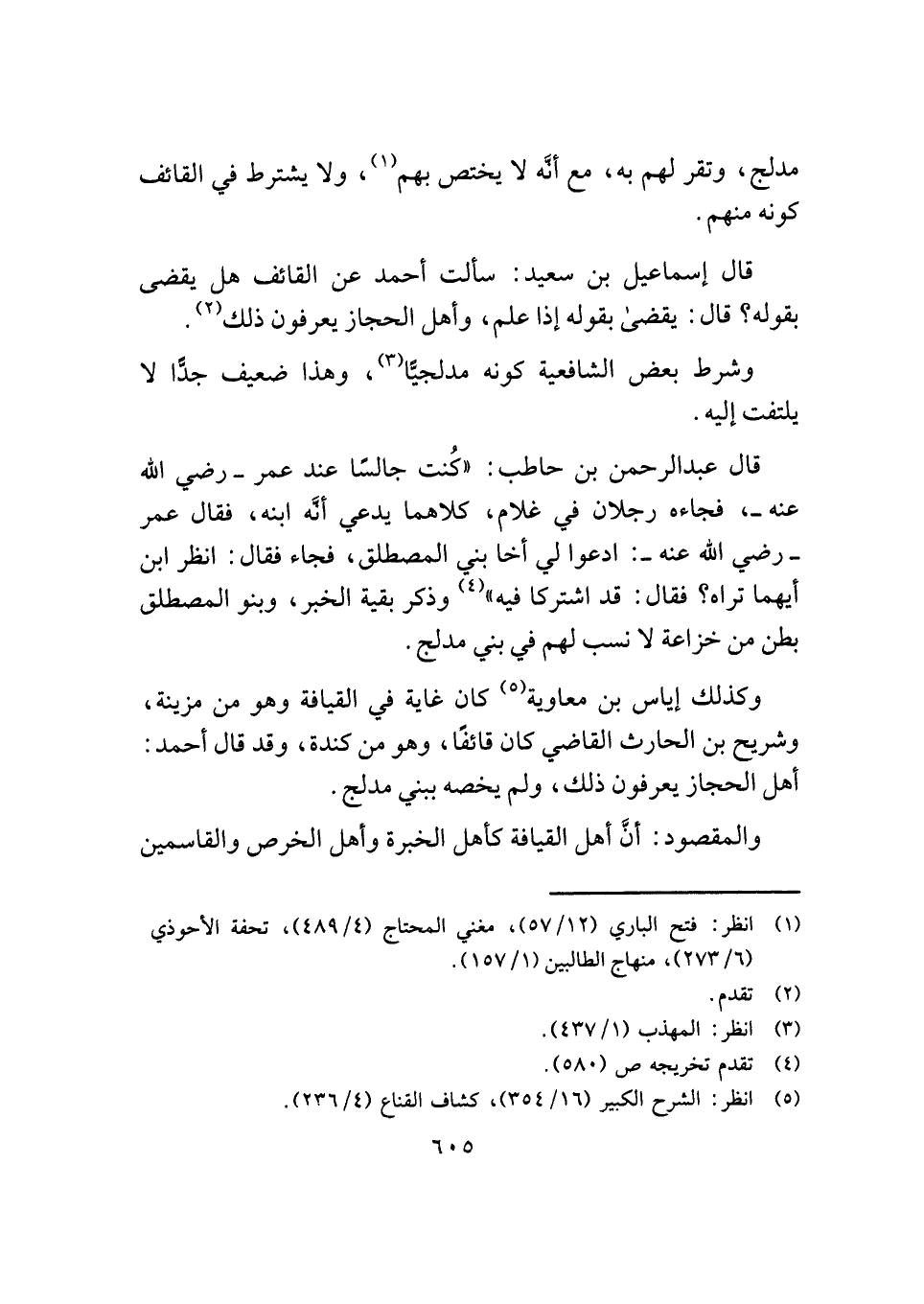 قال عبد الرحمن بن حاطب: "كُنت جالسًا عند عمر - رضي الله عنه -، فجاءه رجلان في غلام، كلاهما يدعي أنَّه ابنه، فقال عمر - رضي الله عنه -: ادعوا لي أخا بني المصطلق، فجاء فقال: انظر ابن أيهما تراه؟ فقال: قد اشتركا فيه" (¬٤) وذكر بقية الخبر، وبنو المصطلق بطن من خزاعة لا نسب لهم في بني مدلج.