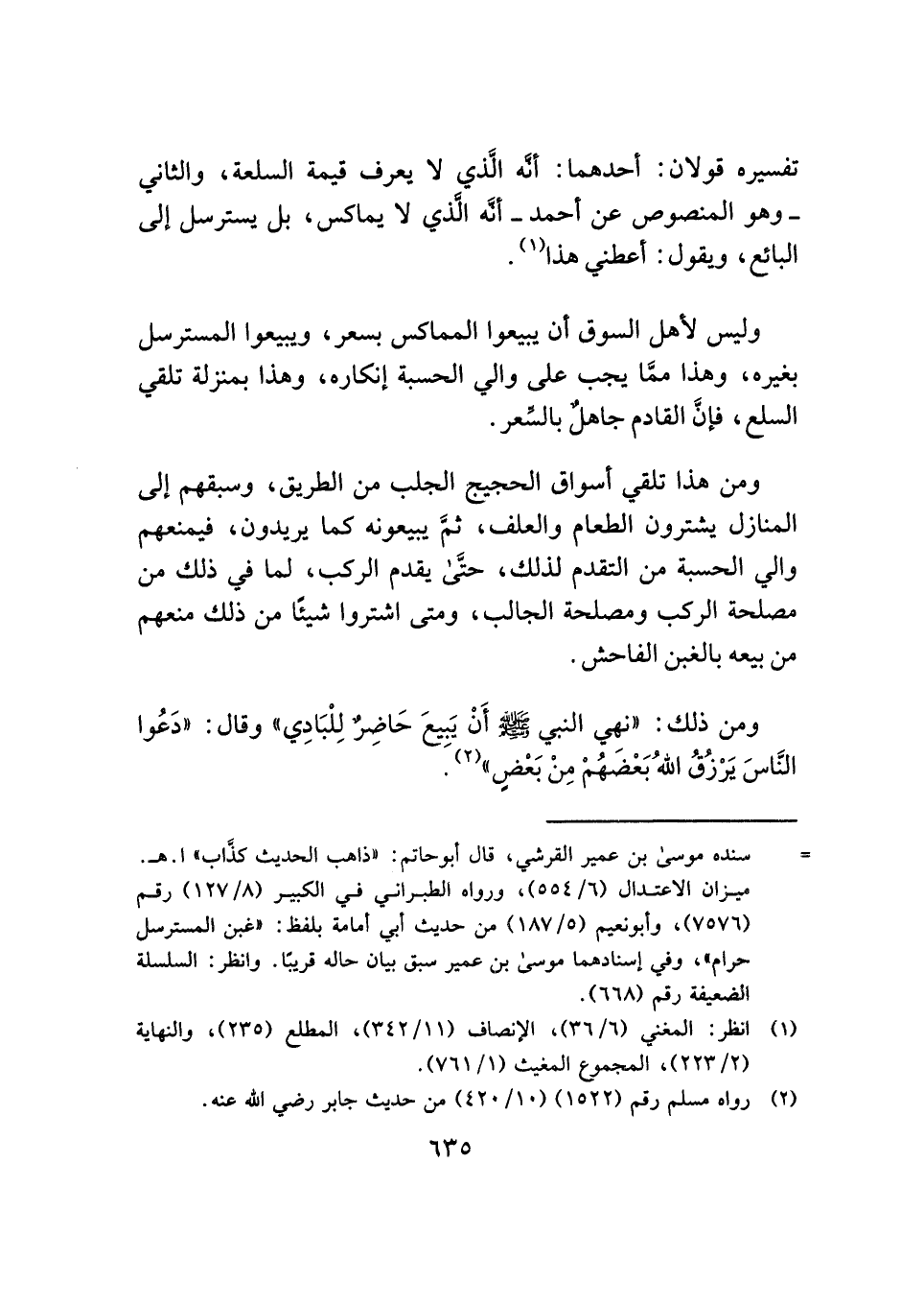 ومن ذلك: "نهي النبي - صلى الله عليه وسلم - أنْ يَبِيعَ حَاضِرٌ لِلْبَادِي" وقال: "دَعُوا النَّاسَ يَرْزُقُ اللهُ بَعْضَهُمْ مِنْ بَعْضٍ" (¬٢).