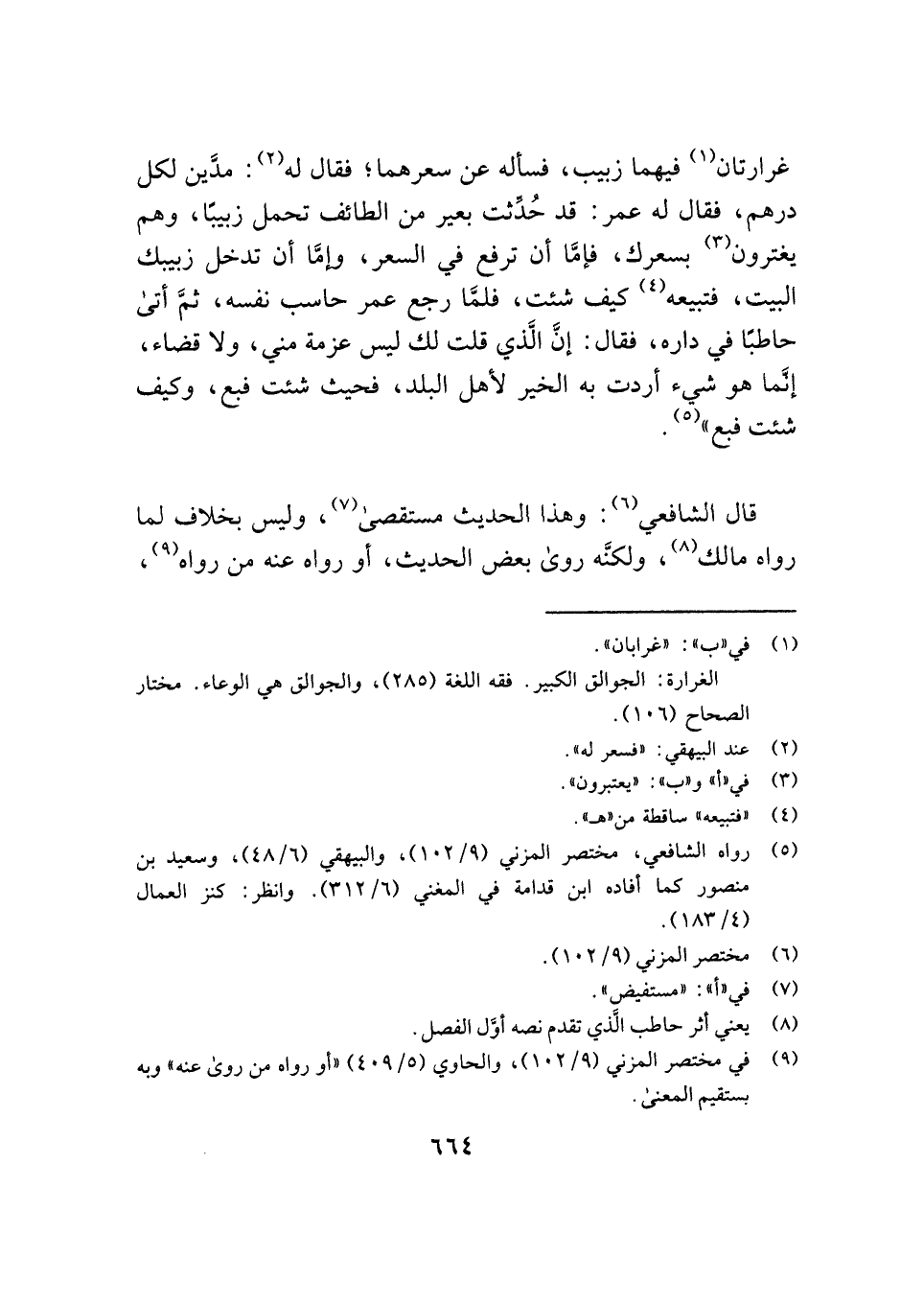 غرارتان (¬١) فيهما زبيب، فسأله عن سعرهما؛ فقال له (¬٢): مدَّين لكل درهم، فقال له عمر: قد حُدِّثت بعير من الطائف تحمل زبيبًا، وهم يغترون (¬٣) بسعرك، فإمَّا أن ترفع في السعر، وإمَّا أن تدخل زبيبك البيت، فتبيعه (¬٤) كيف شئت، فلمَّا رجع عمر حاسب نفسه، ثمَّ أتى حاطبًا في داره، فقال: إنَّ الَّذي قلت لك ليس عزمة مني، ولا قضاء، إنَّما هو شيء أردت به الخير لأهل البلد، فحيث شئت فبع، وكيف شئت فبع" (¬٥).