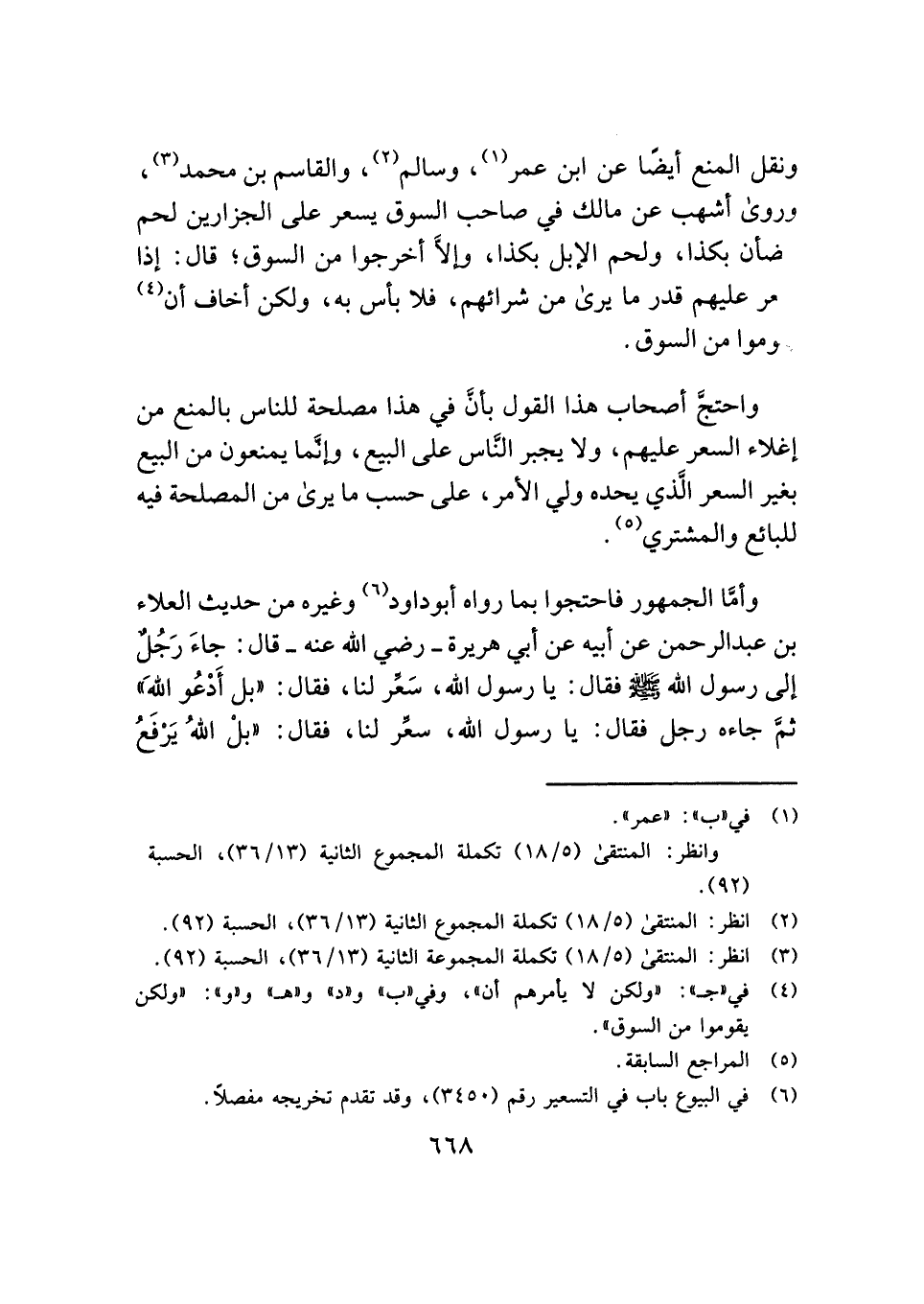 (¬٣) انظر: المنتقى (٥/ ١٨) تكملة المجموعة الثانية (١٣/ ٣٦)، الحسبة (٩٢).