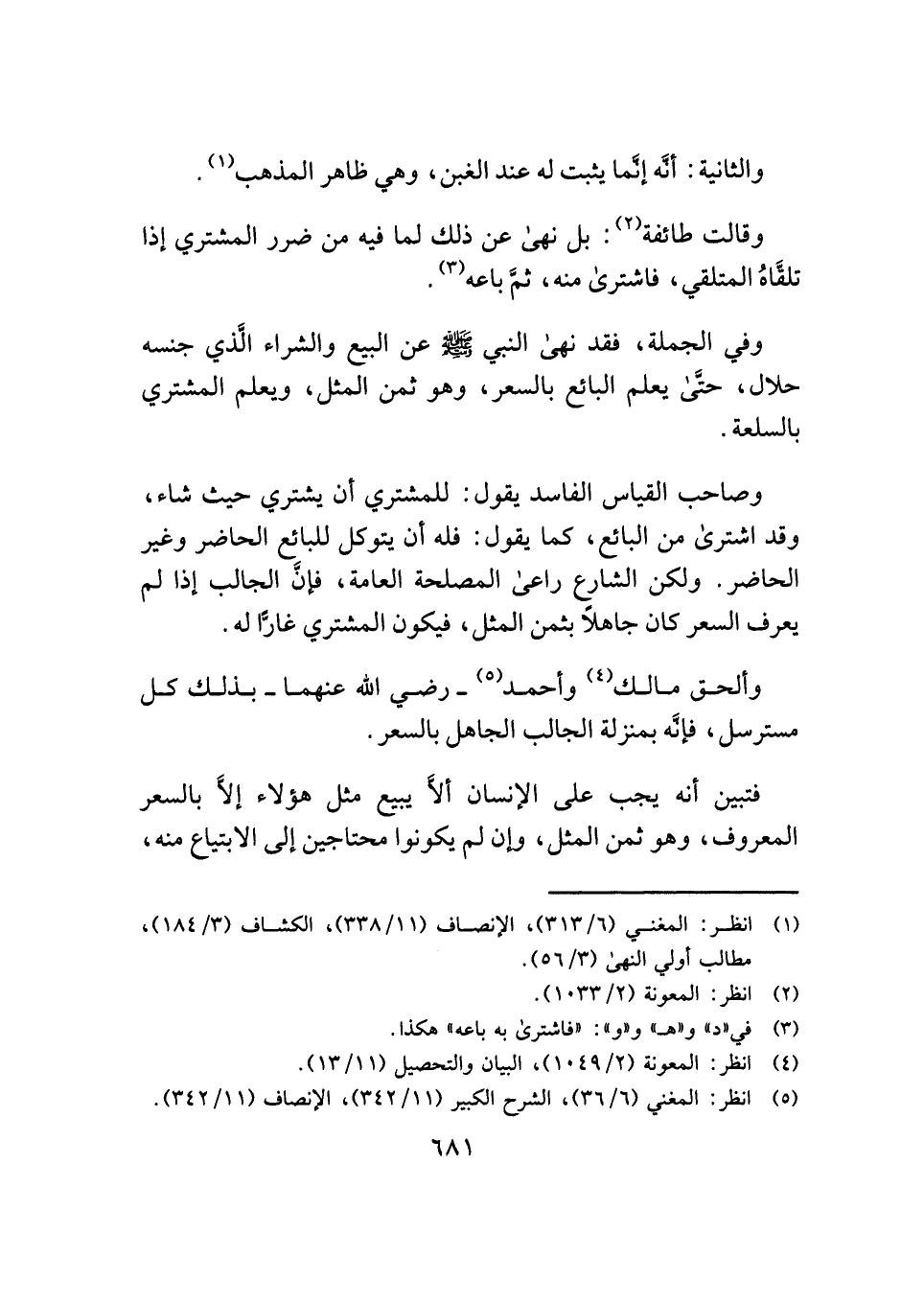وألحق مالك (¬٤) وأحمد (¬٥) - رضي الله عنهما - بذلك كل مسترسل، فإنَّه بمنزلة الجالب الجاهل بالسعر.