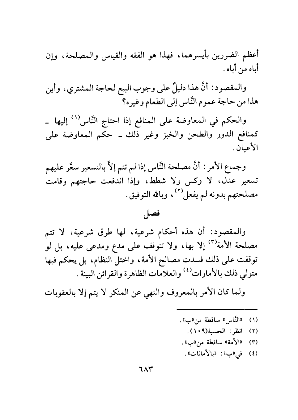 ولما كان الأمر بالمعروف والنهي عن المنكر لا يتم إلا بالعقوبات