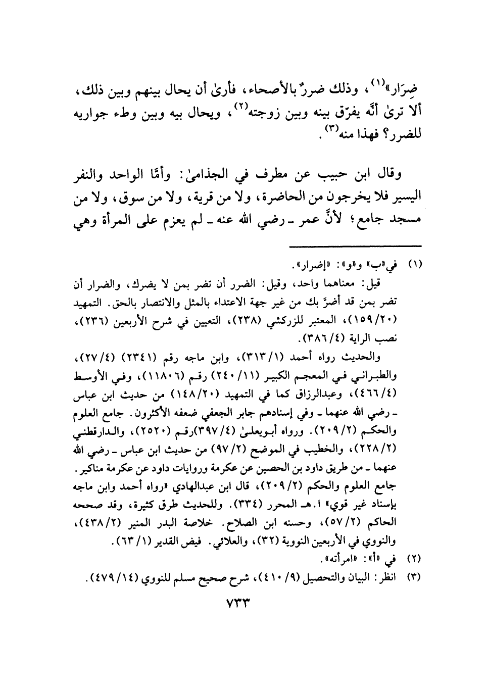 (¬٣) انظر: البيان والتحصيل (٩/ ٤١٠)، شرح صحيح مسلم للنووي (١٤/ ٤٧٩).