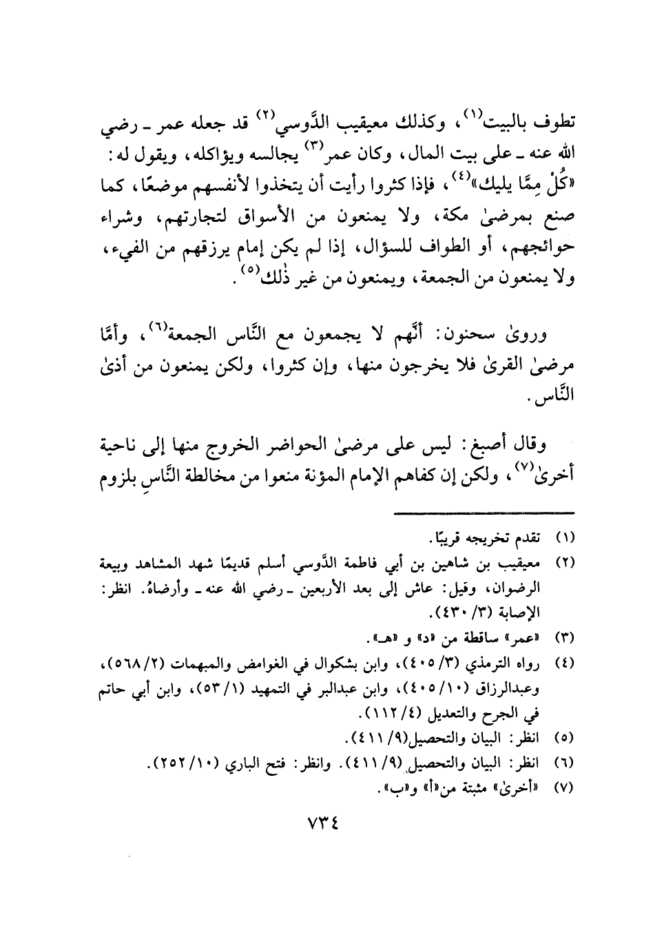 تطوف بالبيت (¬١)، وكذلك معيقيب الدَّوسي (¬٢) قد جعله عمر - رضي الله عنه - على بيت المال، وكان عمر (¬٣) يجالسه ويؤاكله، ويقول له: "كُلْ مِمَّا يليك" (¬٤)، فإذا كثروا رأيت أن يتخذوا لأنفسهم موضعًا، كما صنع بمرضى مكة، ولا يمنعون من الأسواق لتجارتهم، وشراء حوائجهم، أو الطواف للسؤال، إذا لم يكن إمام يرزقهم من الفيء، ولا يمنعون من الجمعة، ويمنعون من غير ذلك (¬٥).