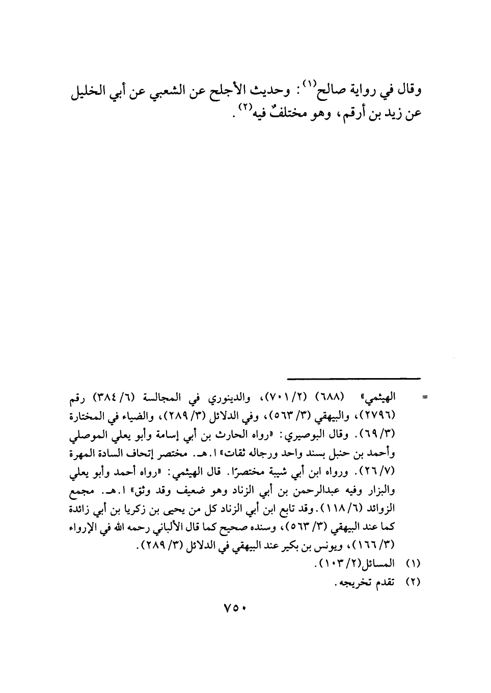 وقال في رواية صالح (¬١): وحديث الأجلح عن الشعبي عن أبي الخليل عن زيد بن أرقم، وهو مختلفٌ فيه (¬٢).