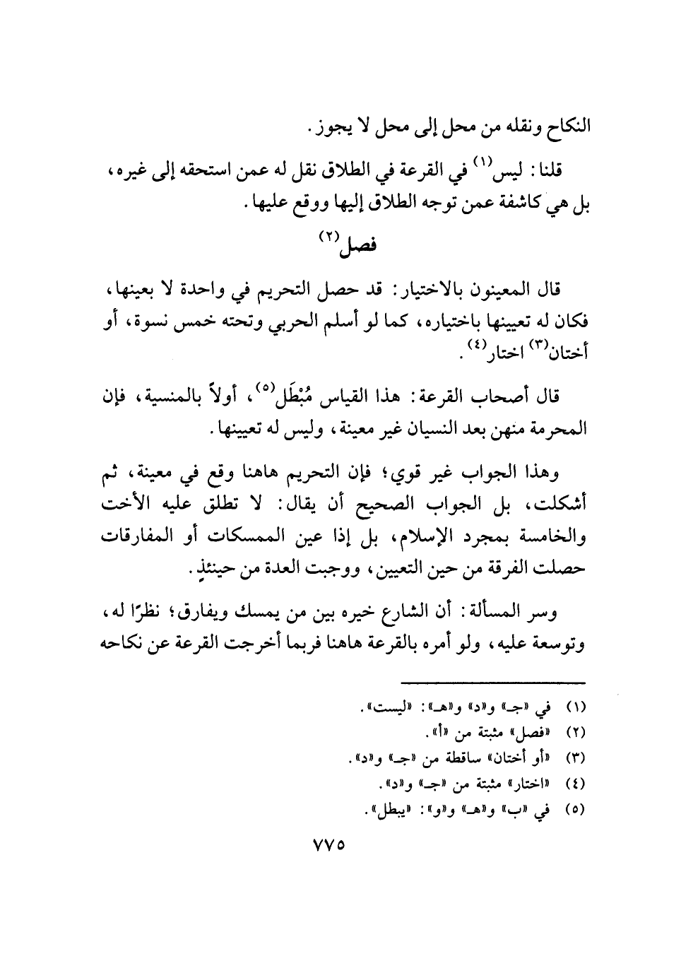 قال أصحاب القرعة: هذا القياس مُبْطَل (¬٥)، أولًا بالمنسية، فإن المحرمة منهن بعد النسيان غير معينة، وليس له تعيينها.