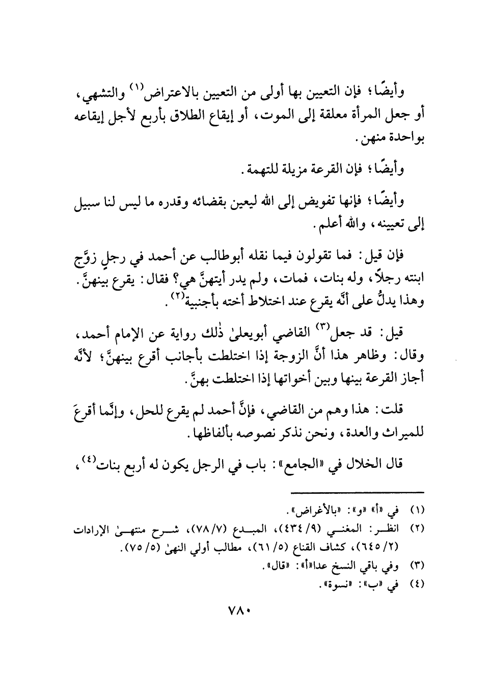 فإن قيل: فما تقولون فيما نقله أبو طالب عن أحمد في رجل زوَّج ابنته رجلًا، وله بنات، فمات، ولم يدر أيتهنَّ هي؟ فقال: يقرع بينهنَّ. وهذا يدلُّ على أنَّه يقرع عند اختلاط أخته بأجنبية (¬٢).