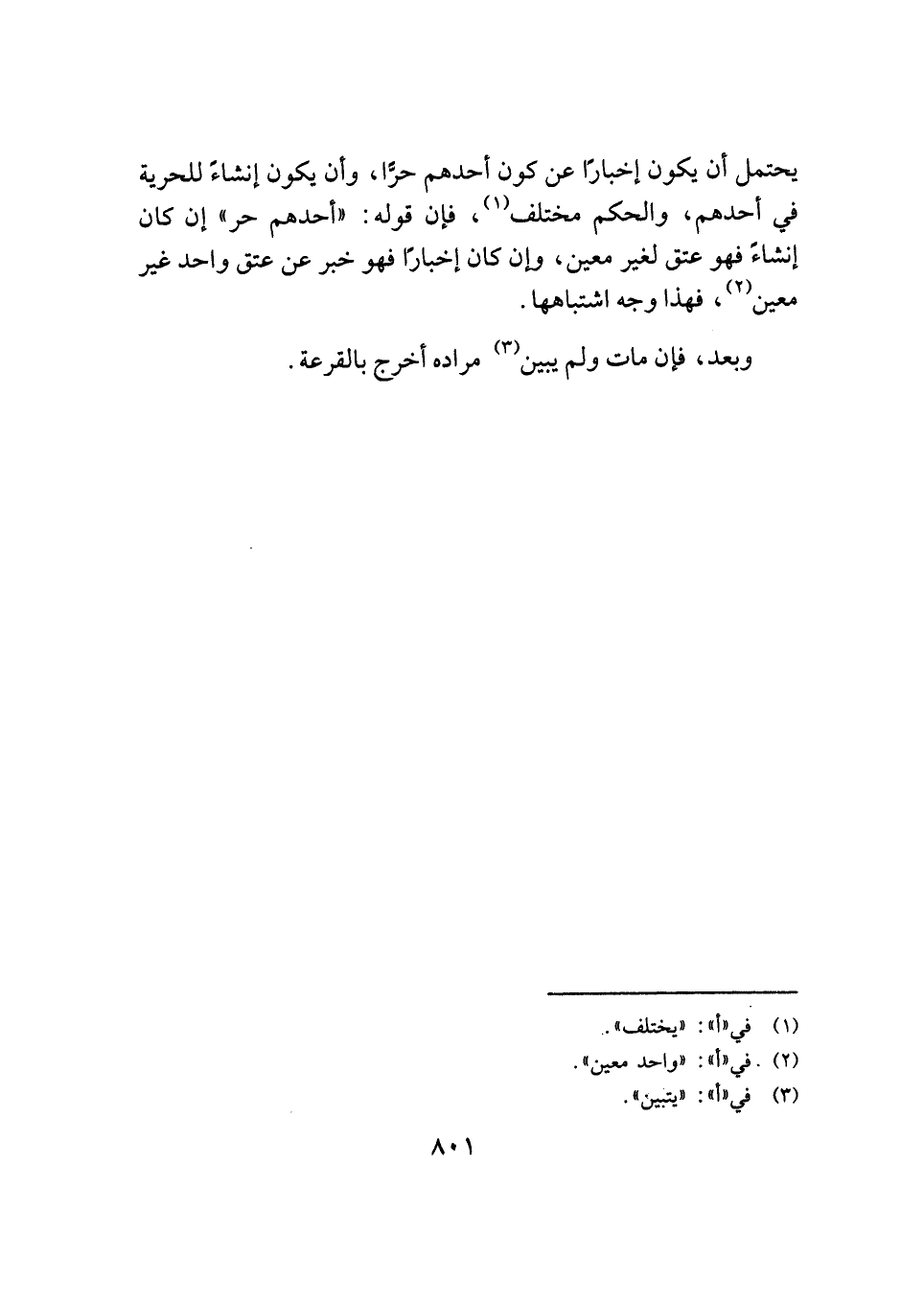 يحتمل أن يكون إخبارًا عن كون أحدهم حرًّا، وأن يكون إنشاءً للحرية في أحدهم، والحكم مختلف (¬١)، فإن قوله: "أحدهم حر" إن كان إنشاءً فهو عتق لغير معين، وإن كان إخبارًا فهو خبر عن عتق واحد غير معين (¬٢)، فهذا وجه اشتباهها.