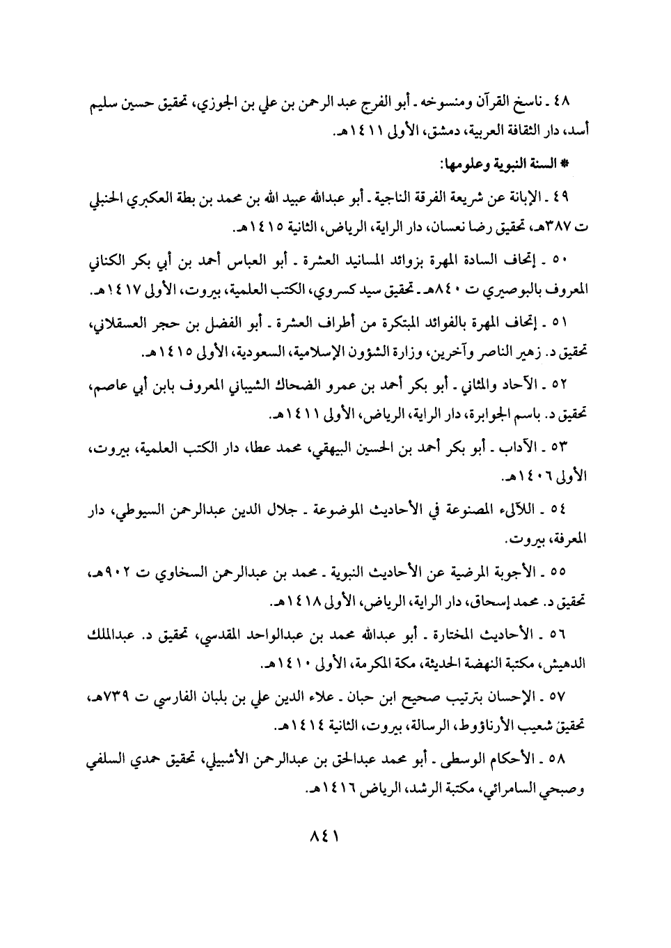 ٥٨ - الأحكام الوسطى - أبو محمد عبد الحق بن عبد الرحمن الأشبيلي، تحقيق حمدي السلفي وصبحي السامرائي، مكتبة الرشد، الرياض ١٤١٦ هـ.