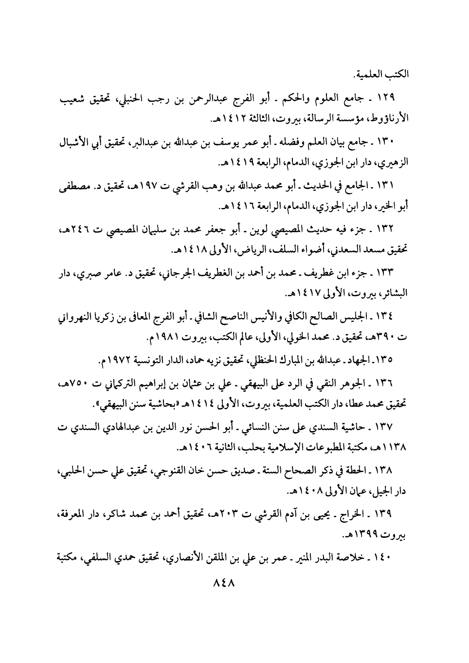 ١٢٩ - جامع العلوم والحكم - أبو الفرج عبد الرحمن بن رجب الحنبلي، تحقيق شعيب الأرناؤوط، مؤسسة الرسالة، بيروت، الثالثة ١٤١٢ هـ.
