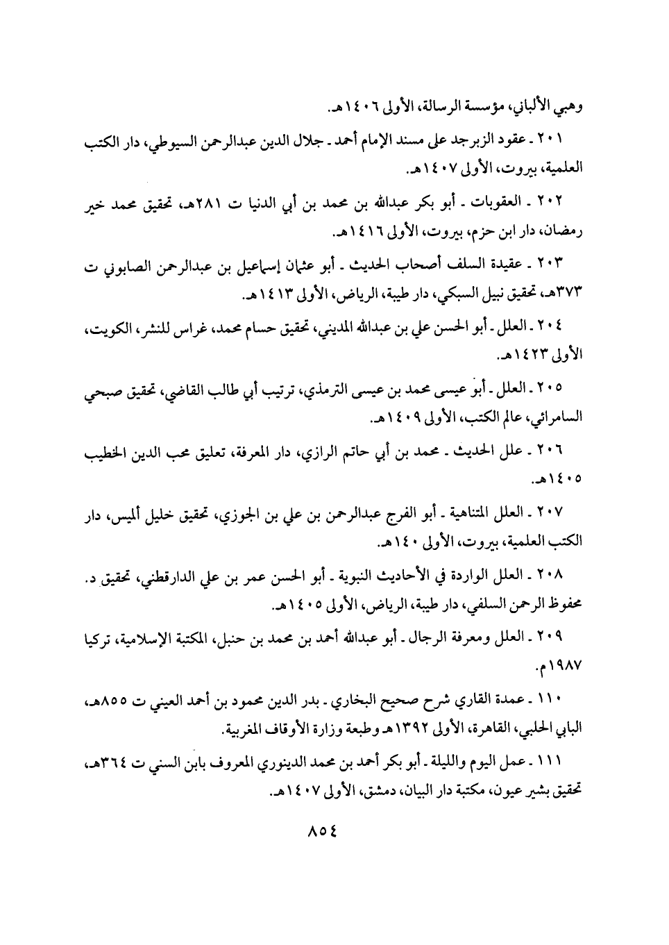 ٢٠٦ - علل الحديث - محمد بن أبي حاتم الرازي، دار المعرفة، تعليق محب الدين الخطيب ١٤٠٥ هـ.
