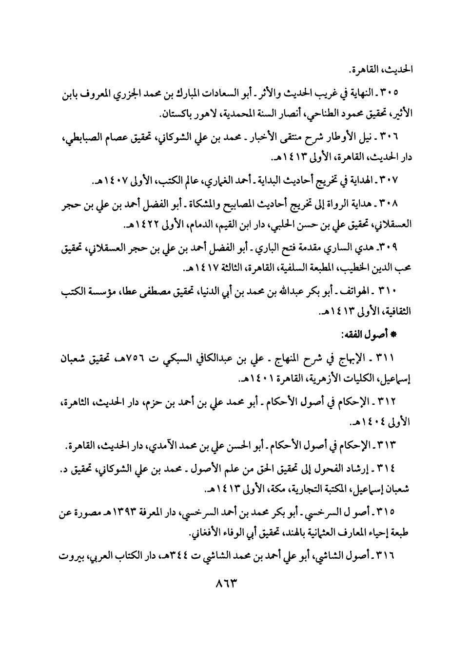 ٣١٤ - إرشاد الفحول إلى تحقيق الحق من علم الأصول - محمد بن علي الشوكاني، تحقيق د. شعبان إسماعيل، المكتبة التجارية، مكة، الأولى ١٤١٣ هـ.