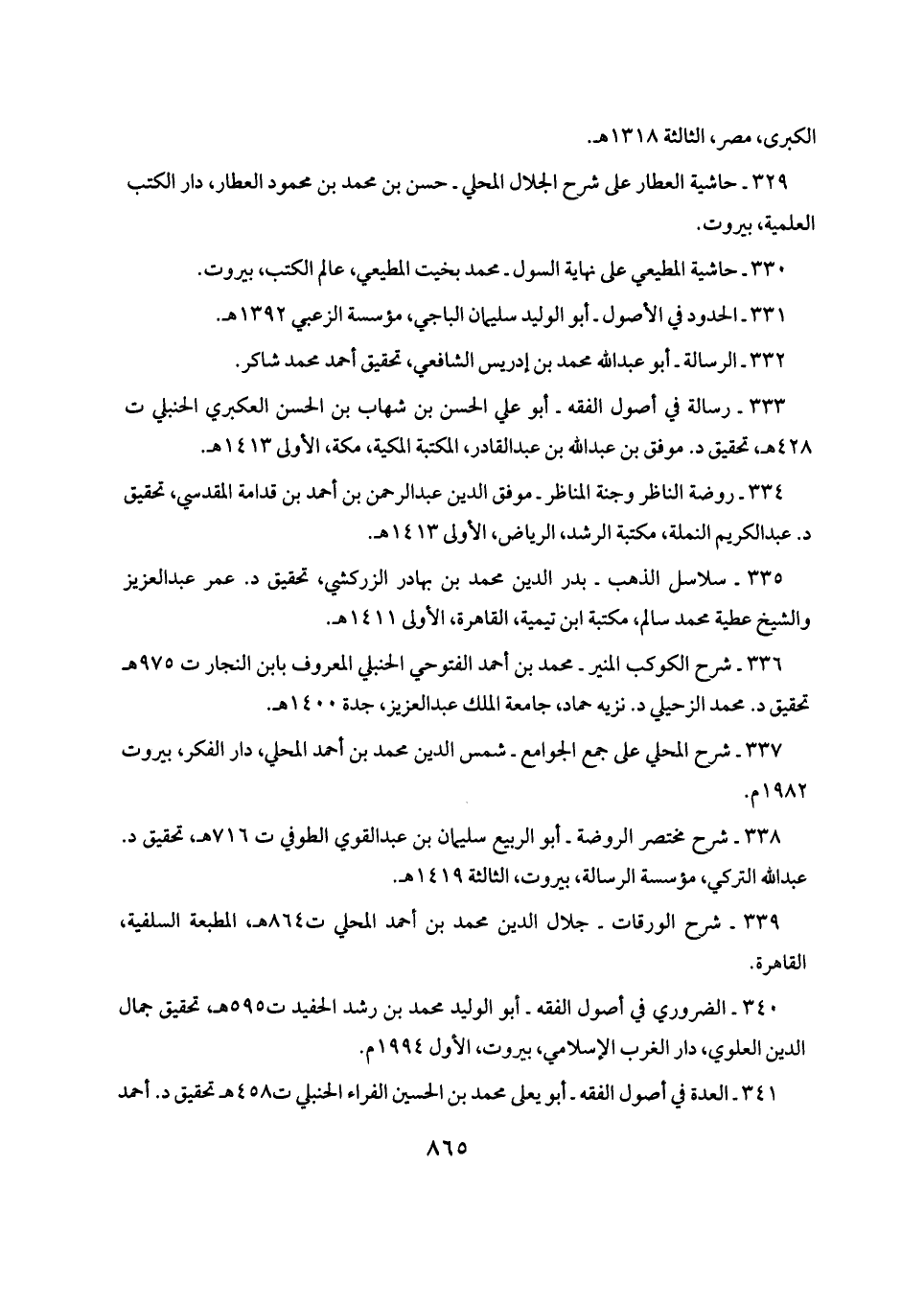 ٣٤٠ - الضروري في أصول الفقه - أبو الوليد محمد بن رشد الحفيد ت ٥٩٥ هـ، تحقيق جمال الدين العلوي، دار الغرب الإسلامي، بيروت، الأول ١٩٩٤ م.