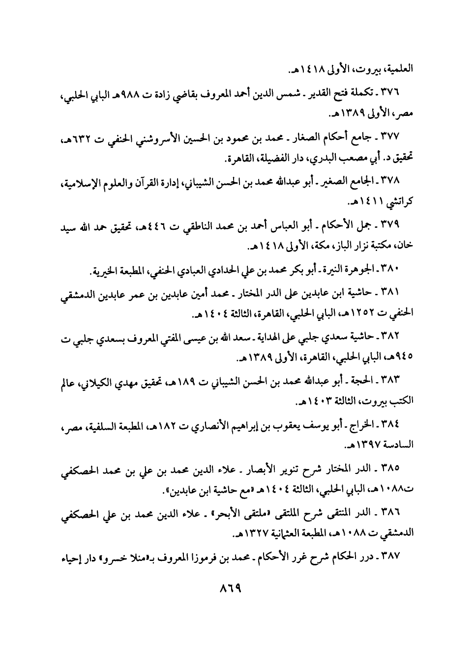 ٣٨٥ - الدر المختار شرح تنوير الأبصار - علاء الدين محمد بن علي بن محمد الحصكفي ت ١٠٨٨ هـ، البابي الحلبي، الثالثة ١٤٠٤ هـ "مع حاشية ابن عابدين".