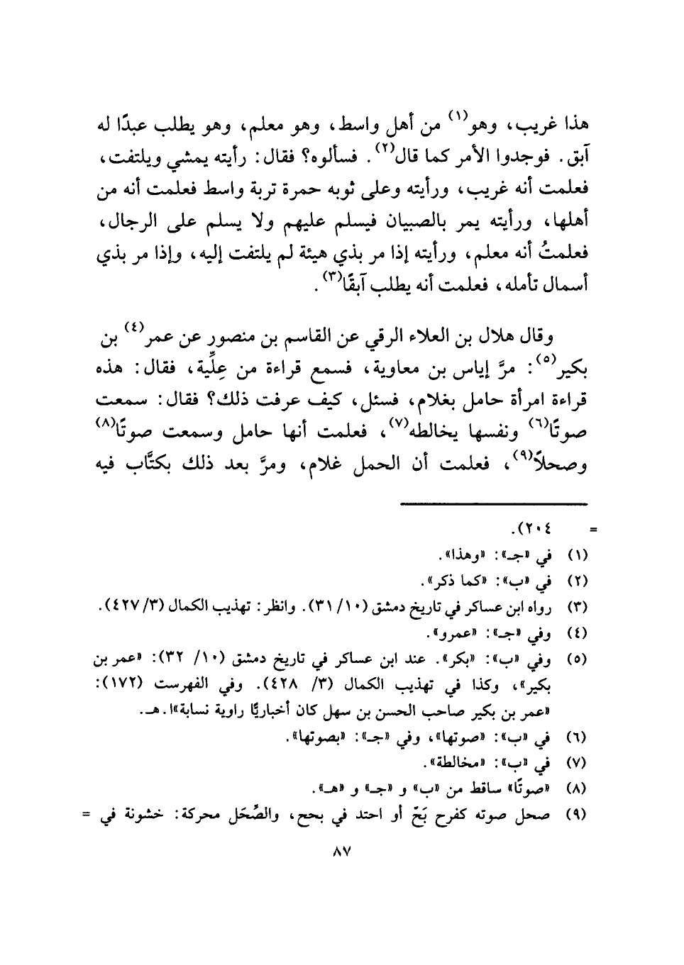 (¬٥) وفي "ب": "بكر". عند ابن عساكر في تاريخ دمشق (١٠/ ٣٢): "عمر بن بكير"، وكذا في تهذيب الكمال (٣/ ٤٢٨). وفي الفهرست (١٧٢): "عمر بن بكير صاحب الحسن بن سهل كان أخباريًّا راوية نسابة" ا. هـ.