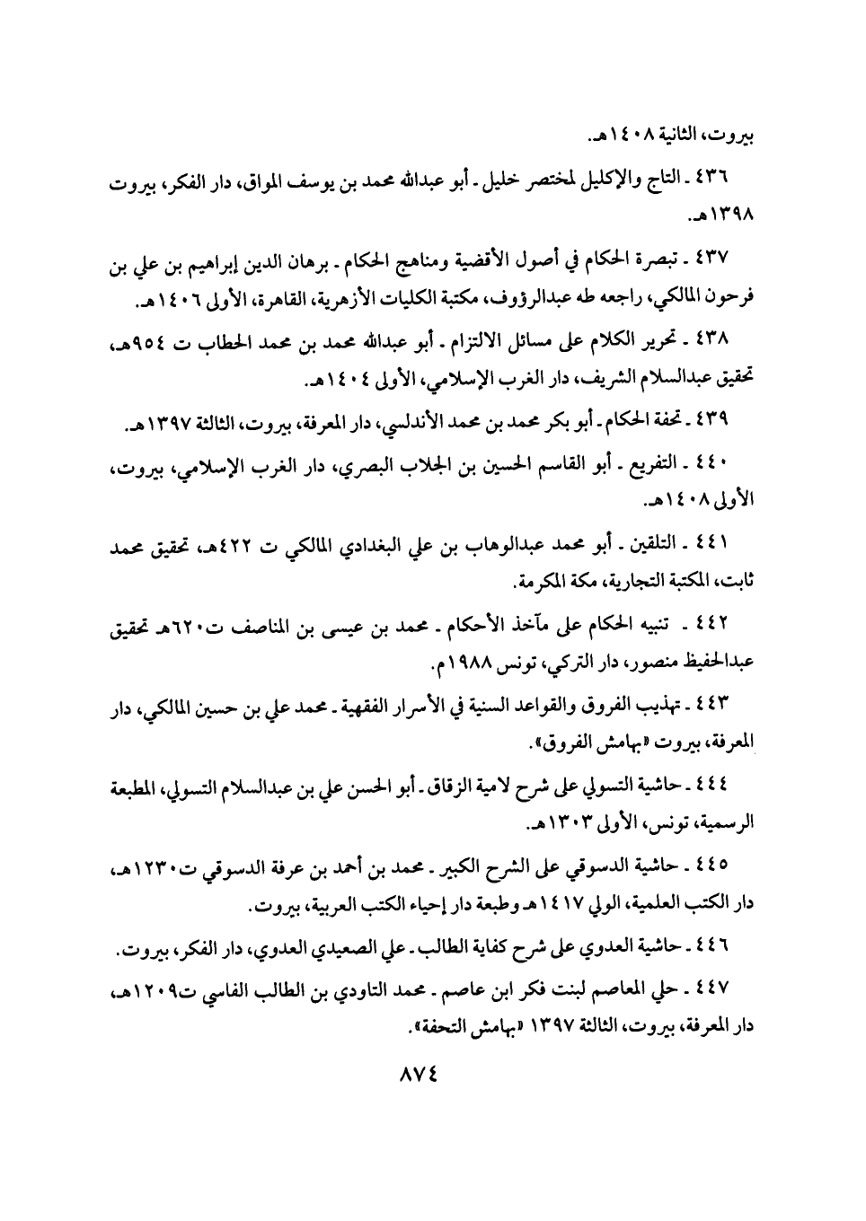 ٤٣٩ - تحفة الحكام - أبو بكر محمد بن محمد الأندلسي، دار المعرفة، بيروت، الثالثة ١٣٩٧ هـ.