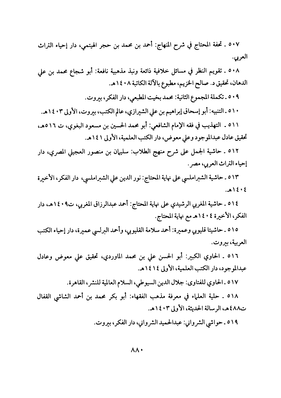 ٥١٩ - حواشي الشرواني: عبد الحميد الشرواني، دار الفكر، بيروت.
