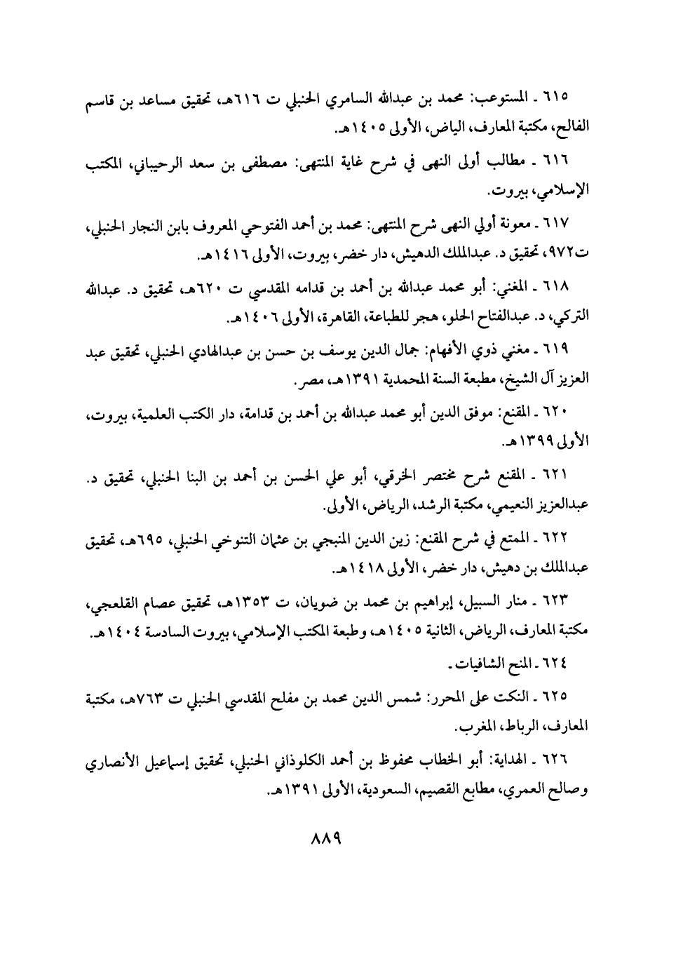 ٦٢٣ - منار السبيل، إبراهيم بن محمد بن ضويان، ت ١٣٥٣ هـ، تحقيق عصام القلعجي، مكتبة المعارف، الرياض، الثانية ١٤٠٥ هـ، وطبعة المكتب الإسلامي، بيروت السادسة ١٤٠٤ هـ.