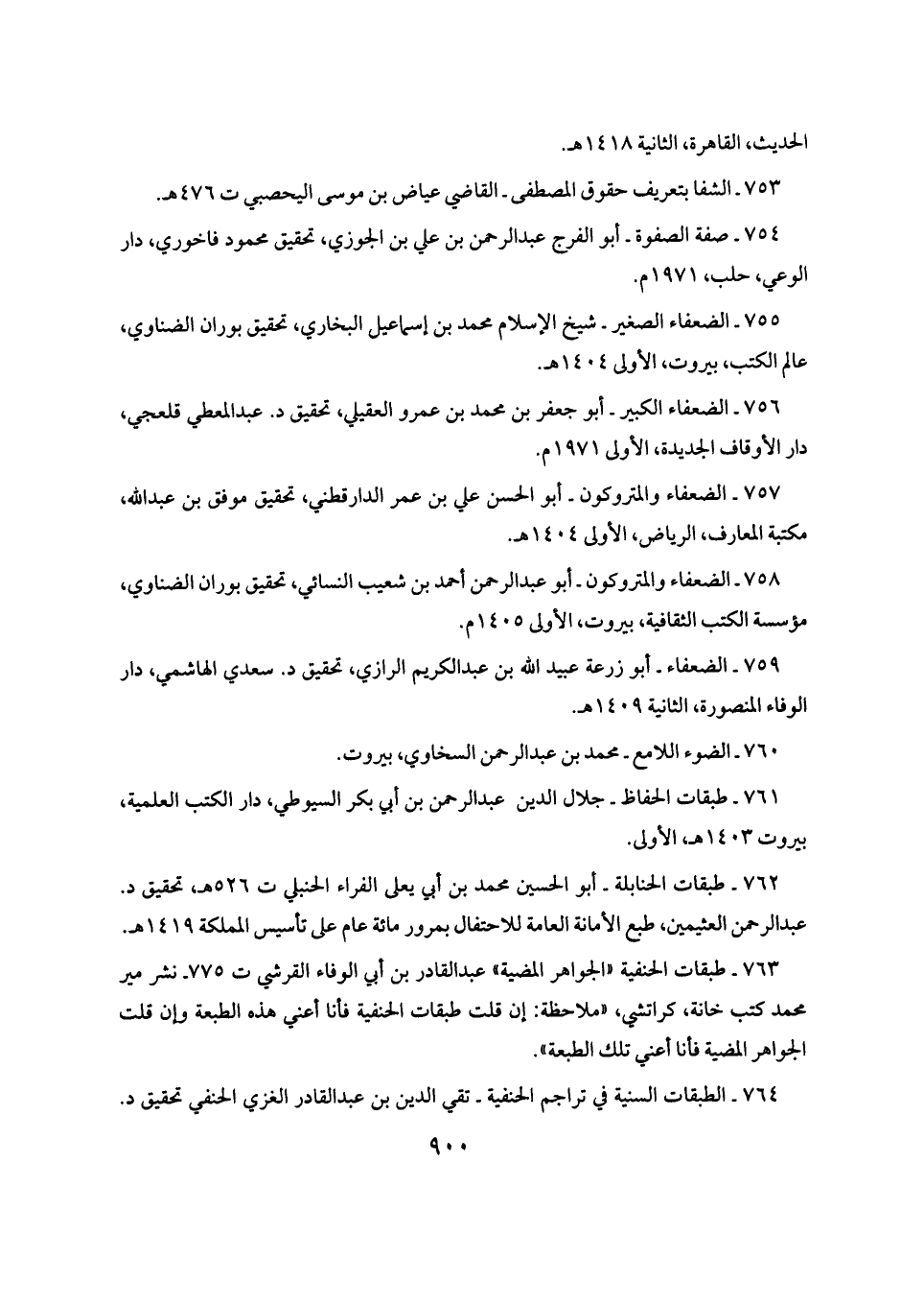 ٧٦٣ - طبقات الحنفية "الجواهر المضية" عبد القادر بن أبي الوفاء القرشي ت ٧٧٥ - نشر مير محمد كتب خانة، كراتشي، "ملاحظة: إن قلت طبقات الحنفية فأنا أعني هذه الطبعة وإن قلت الجواهر المضية فأنا أعني تلك الطبعة".