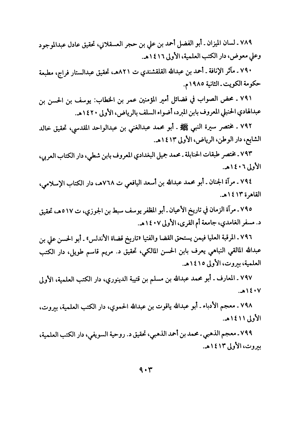 ٧٩٠ - مآثر الإنافة - أحمد بن عبد الله القلقشندي ت ٨٢١ هـ، تحقيق عبد الستار فراج، مطبعة حكومة الكويت - الثانية ١٩٨٥ م.