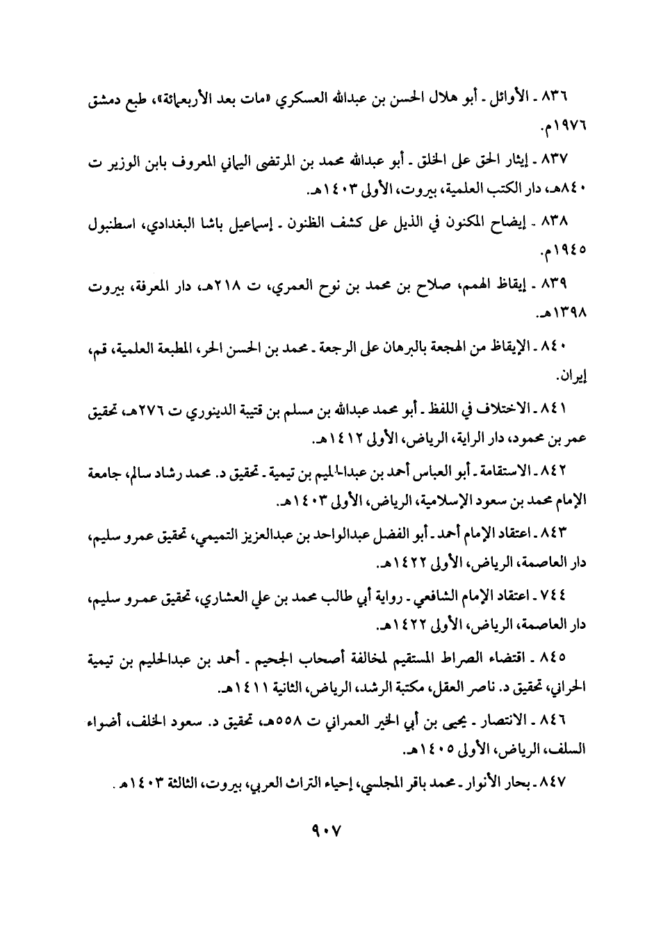٨٤٢ - الاستقامة - أبو العباس أحمد بن عبد الحليم بن تيمية - تحقيق د. محمَّد رشاد سالم، جامعة الإمام محمَّد بن سعود الإِسلامية، الرياض، الأولى ١٤٠٣ هـ.