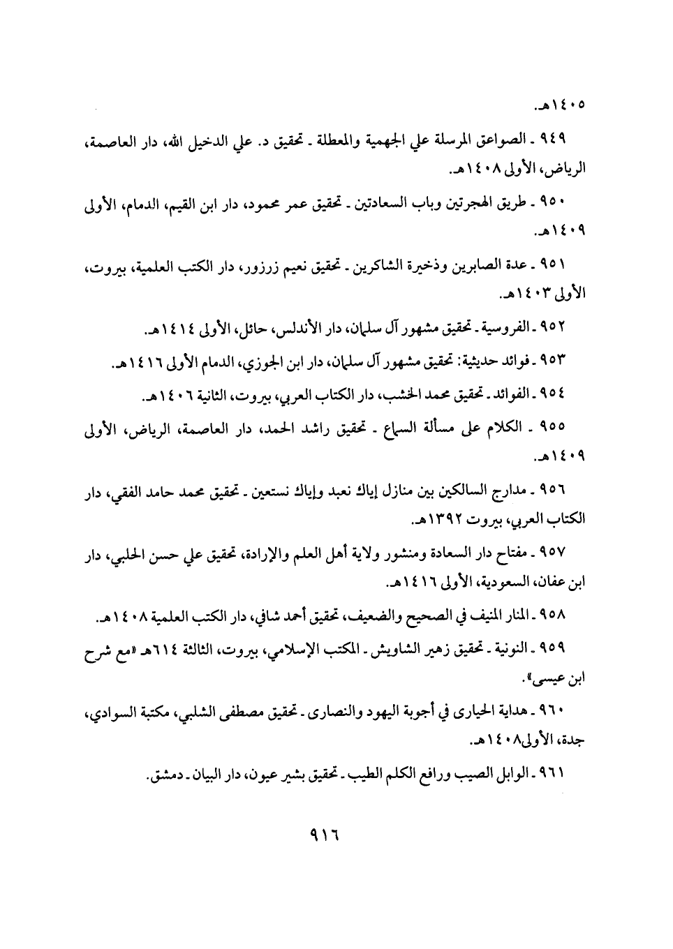 ٩٦١ - الوابل الصيب ورافع الكلم الطيب - تحقيق بشير عيون، دار البيان - دمشق.