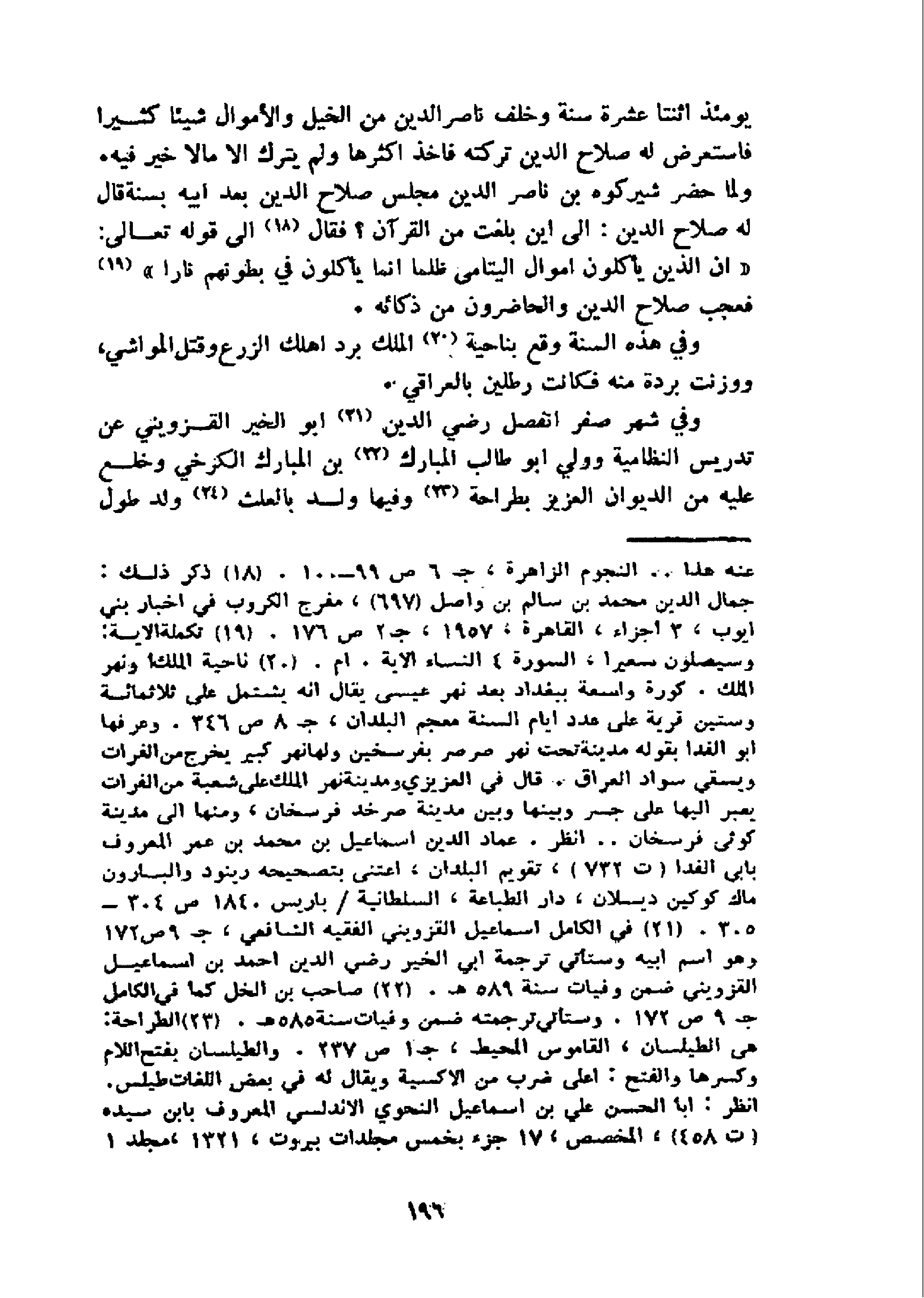 و لما حضر شيركوه بن ناصر الدين مجلس صلاح الدين بعد ابيه بسنة قال له صلاح الدين: الى اين بلغت من القرآن؟ فقال 18 الى قوله تعالى: «إِنَّ اَلَّذِينَ يَأْكُلُونَ أَمْوالَ اَلْيَتامى ظُلْماً إِنَّما يَأْكُلُونَ فِي بُطُونِهِمْ ناراً» 19 فعجب صلاح الدين والحاضرون من ذكائه.