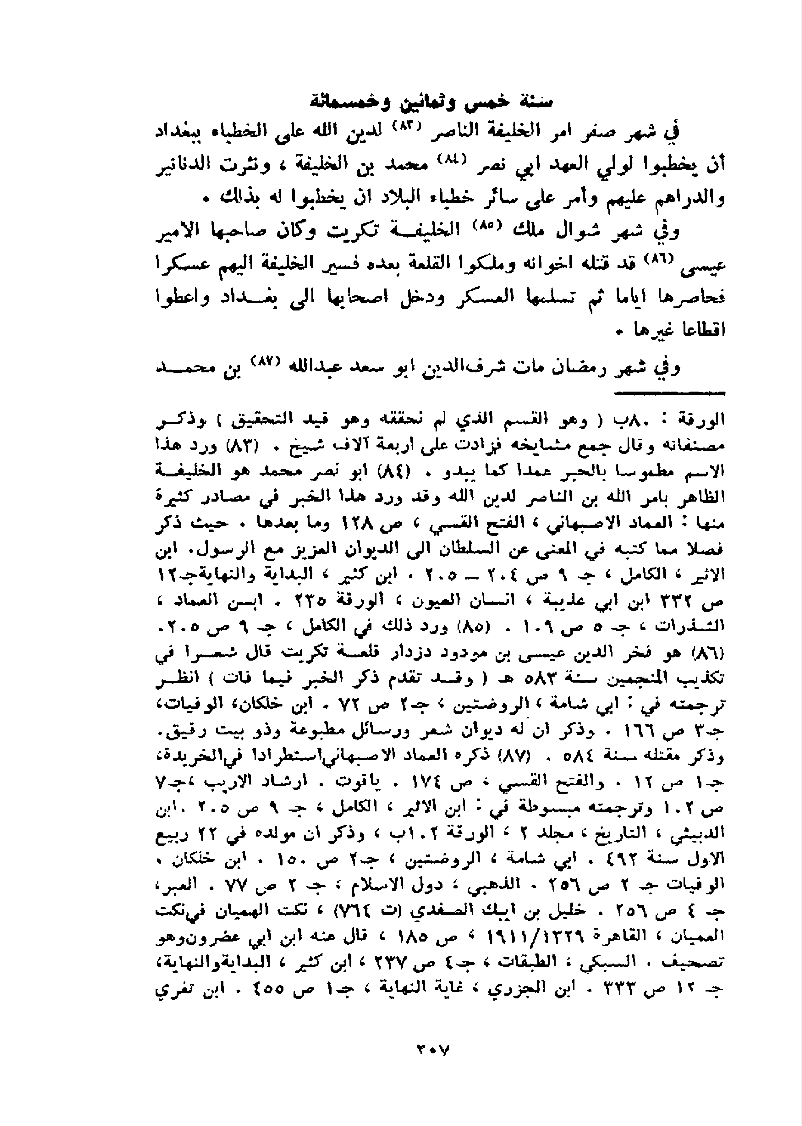 وفي شهر شوال ملك 85 الخليفة تكريت وكان صاحبها الامير عيسى 86 قد قتله اخوانه وملكوا القلعة بعده فسير الخليفة اليهم عسكرا فحاصرها اياما ثم تسلمها العسكر ودخل اصحابها الى بغداد واعطوا اقطاعا غيرها.