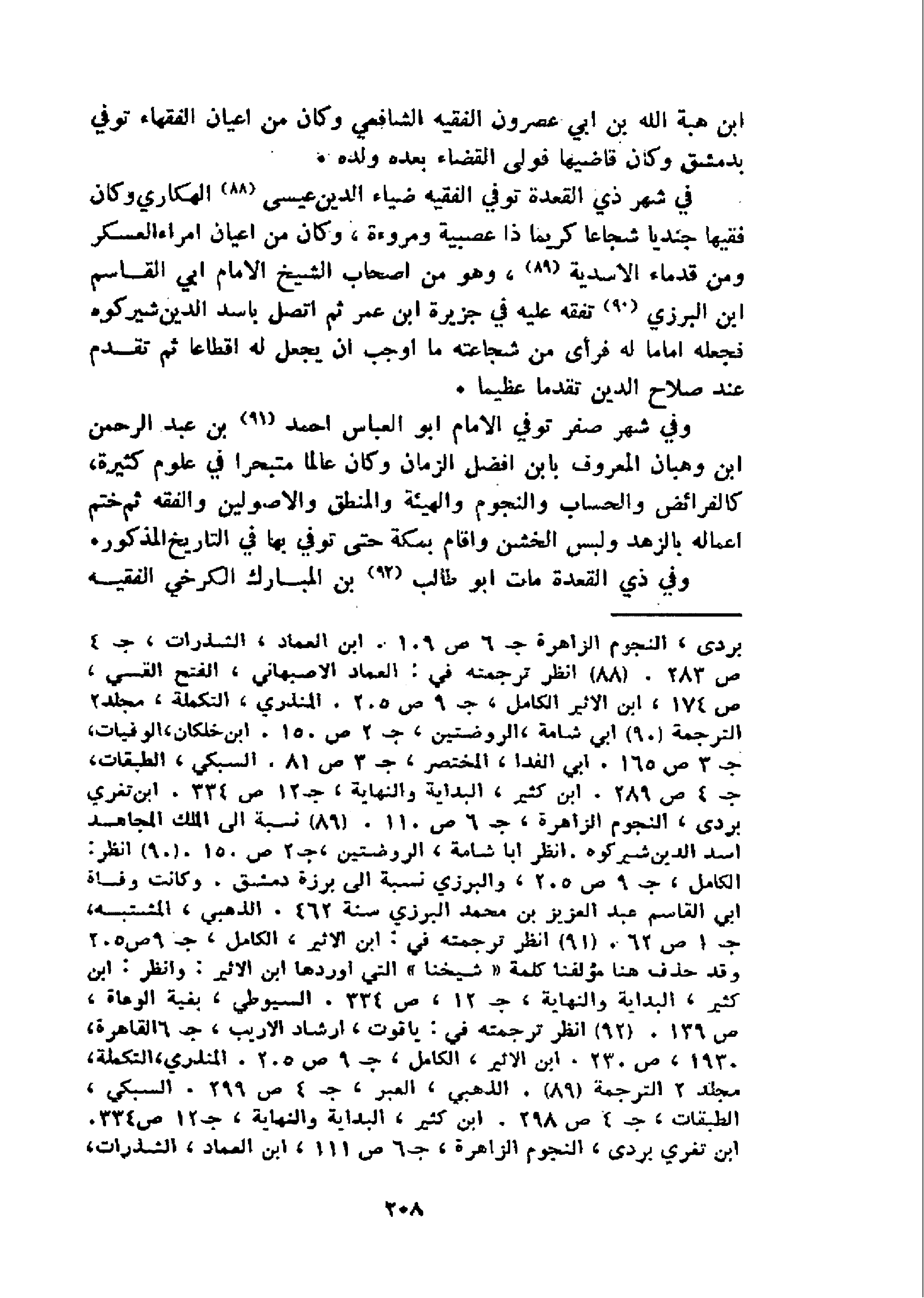 في شهر ذي القعدة توفي الفقيه ضياء الدين عيسى 88 الهكاري وكان فقيها جنديا شجاعا كريما ذا عصبية ومروءة، وكان من اعيان امراء العسكر ومن قدماء الاسدية 89، و هو من اصحاب الشيخ الامام ابي القاسم ابن البرزي 90 تفقه عليه في جزيرة ابن عمر ثم اتصل باسد الدين شيركوه فجعله اماما له فرأى من شجاعته ما اوجب ان يجعل له اقطاعا ثم تقدم عند صلاح الدين تقدما عظيما.