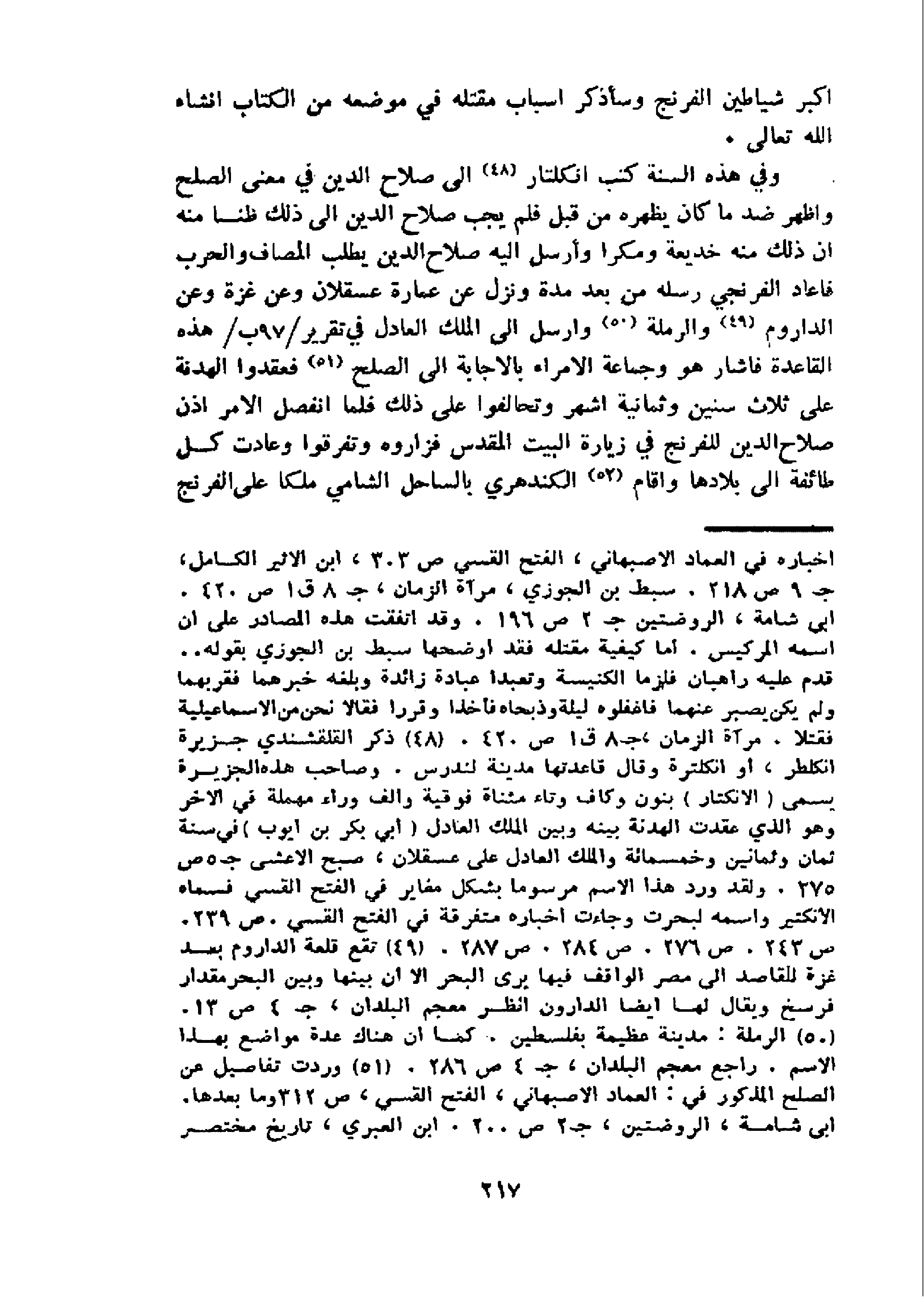اكبر شياطين الفرنج وسأذكر اسباب مقتله في موضعه من الكتاب انشاء الله تعالى.