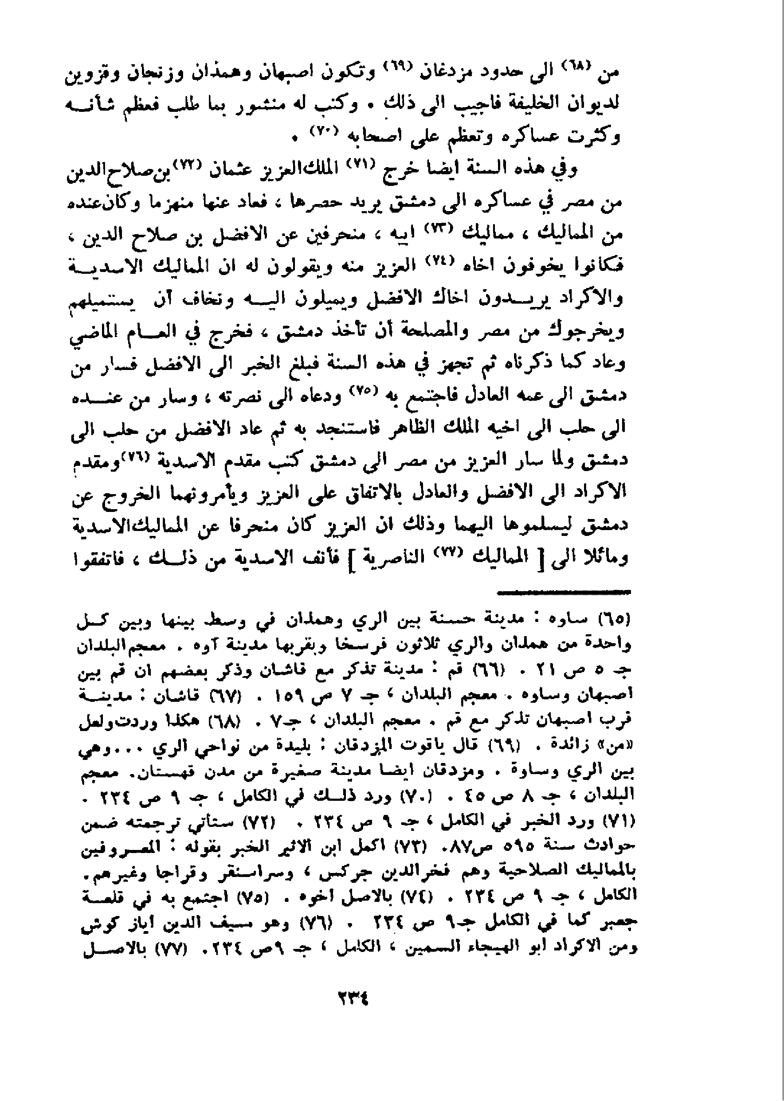 و في هذه السنة ايضا خرج 71 الملك العزيز عثمان 72 بن صلاح الدين من مصر في عساكره الى دمشق يريد حصرها، فعاد عنها منهزما وكان عنده من المماليك، مماليك 73 ابيه، منحرفين عن الافضل بن صلاح الدين، فكانوا يخوفون اخاه 74 العزيز منه ويقولون له ان المماليك الاسدية والاكراد يريدون اخاك الافضل ويميلون اليه ونخاف أن يستميلهم ويخرجوك من مصر والمصلحة أن تأخذ دمشق، فخرج في العام الماضي وعاد كما ذكرناه ثم تجهز في هذه السنة فبلغ الخبر الى الافضل فسار من دمشق الى عمه العادل فاجتمع به 75 و دعاه الى نصرته، وسار من عنده الى حلب الى اخيه الملك الظاهر فاستنجد به ثم عاد الافضل من حلب الى دمشق ولما سار العزيز من مصر الى دمشق كتب مقدم الاسدية 76 و مقدم الاكراد الى الافضل والعادل بالاتفاق على العزيز ويأمرونهما الخروج عن دمشق ليسلموها اليهما وذلك ان العزيز كان منحرفا عن المماليك الاسدية ومائلا الى [المماليك 77 الناصرية] فأنف الاسدية من ذلك، فاتفقوا