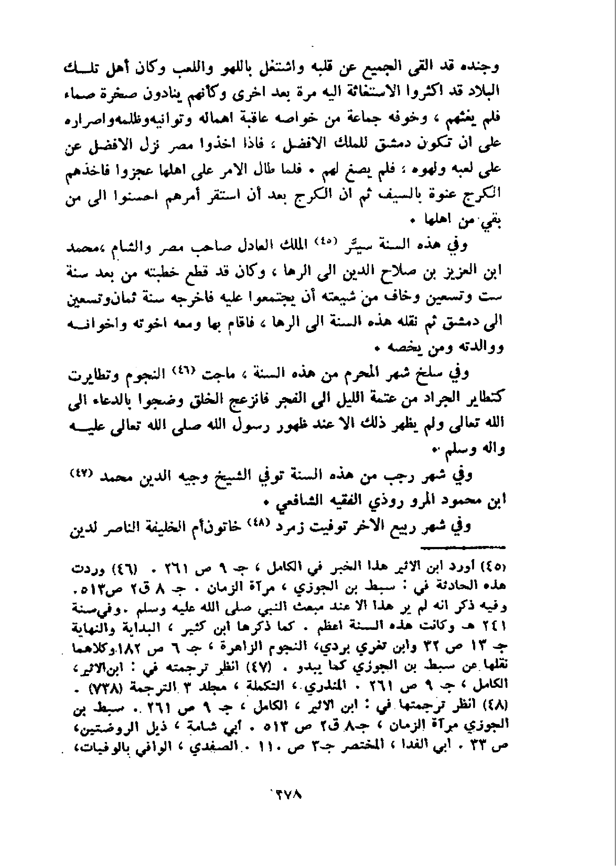 و في هذه السنة سيّر 45 الملك العادل صاحب مصر والشام، محمد ابن العزيز بن صلاح الدين الى الرها، وكان قد قطع خطبته من بعد سنة ست وتسعين وخاف من شيعته أن يجتمعوا عليه فاخرجه سنة ثمان وتسعين الى دمشق ثم نقله هذه السنة الى الرها، فاقام بها ومعه اخوته واخوانه ووالدته ومن يخصه.