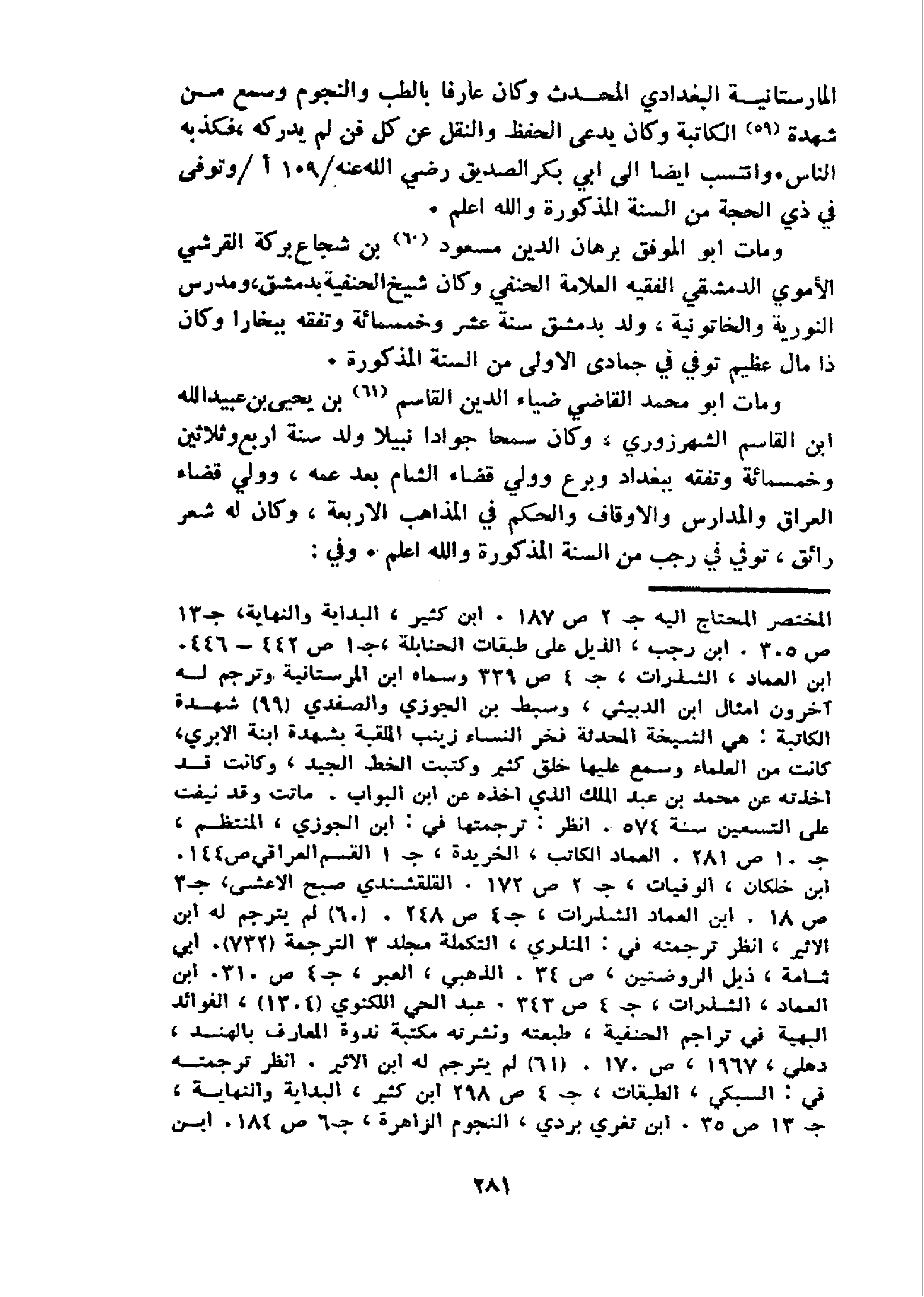 المارستانية البغدادي المحدث وكان عارفا بالطب والنجوم وسمع من شهدة 59 الكاتبة وكان يدعى الحفظ والنقل عن كل فن لم يدركه، فكذبه الناس. وانتسب ايضا الى ابي بكر الصديق رضي الله عنه 109 / أ/و توفى في ذي الحجة من السنة المذكورة والله اعلم.