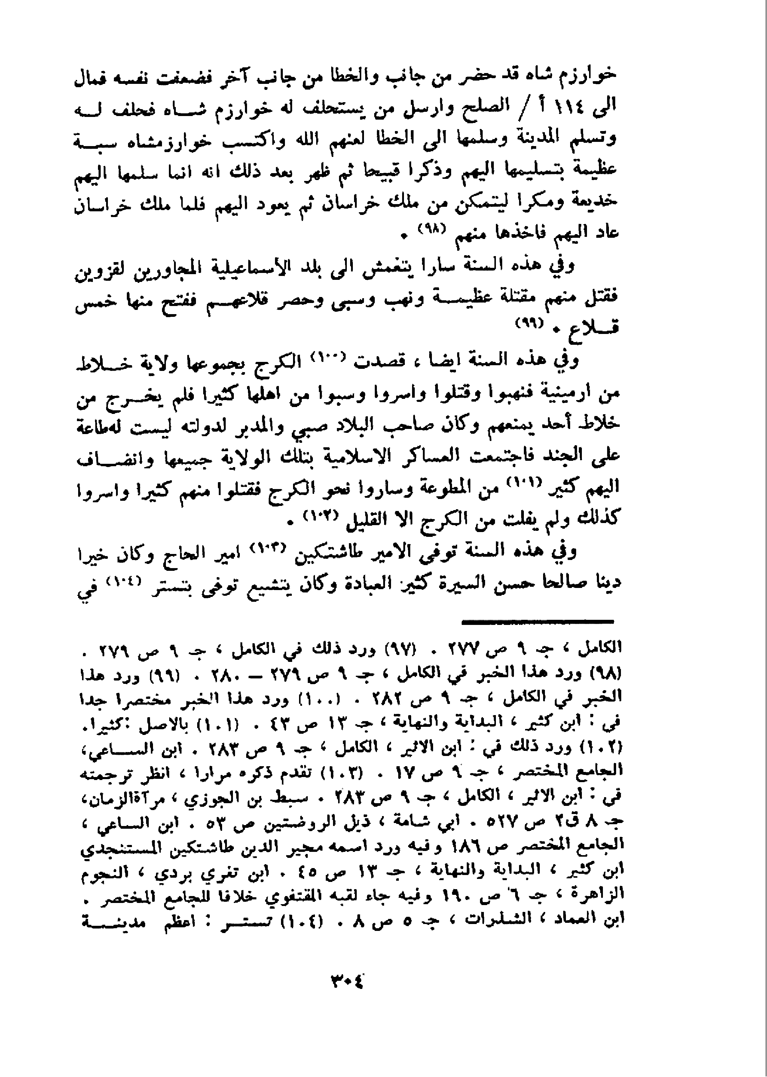 و في هذه السنة توفى الامير طاشتكين 103 امير الحاج وكان خيرا دينا صالحا حسن السيرة كثير العبادة وكان يتشيع توفى بتستر 104 في