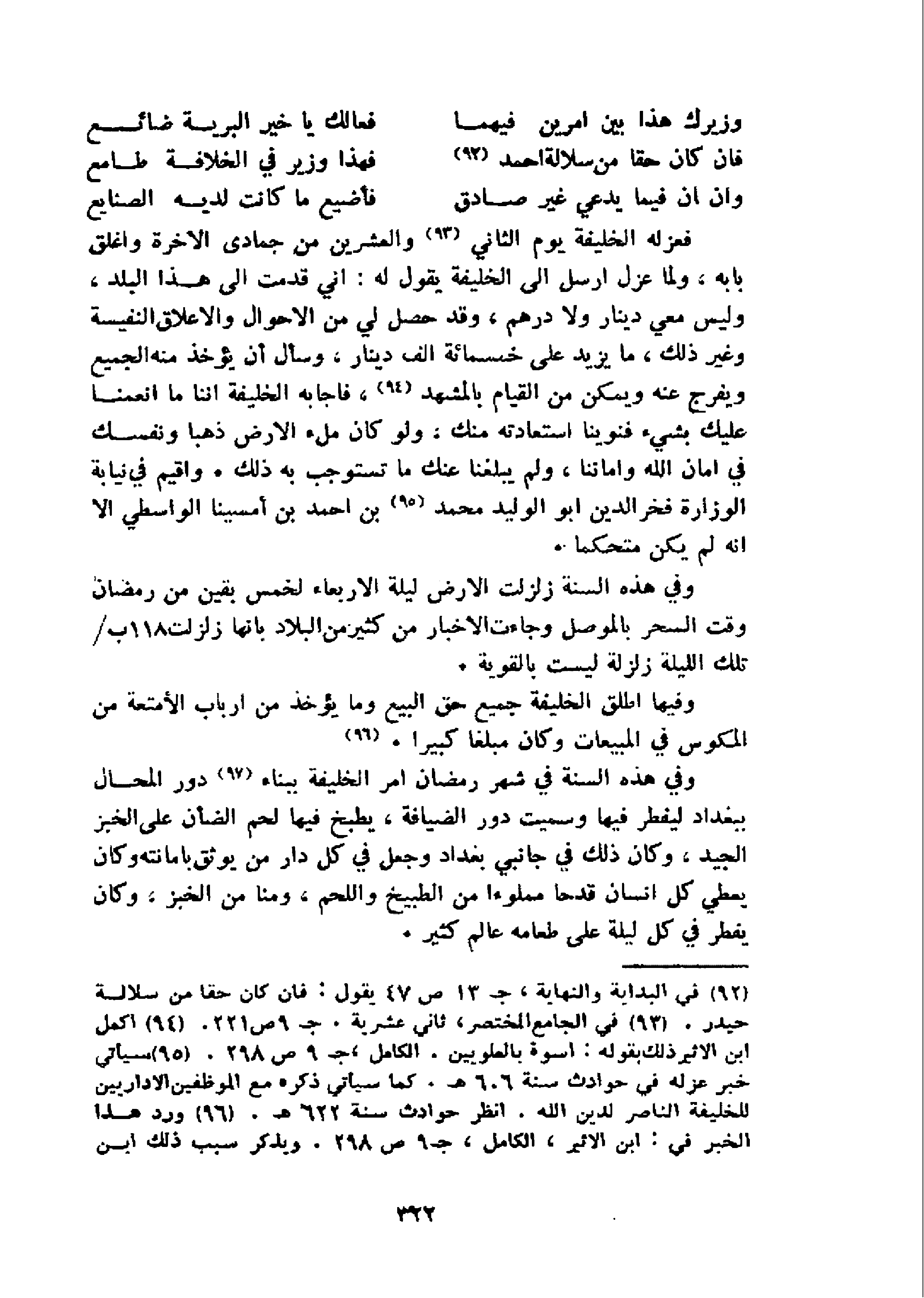 وفيها اطلق الخليفة جميع حق البيع وما يؤخذ من ارباب الأمتعة من المكوس في المبيعات وكان مبلغا كبيرا. 96