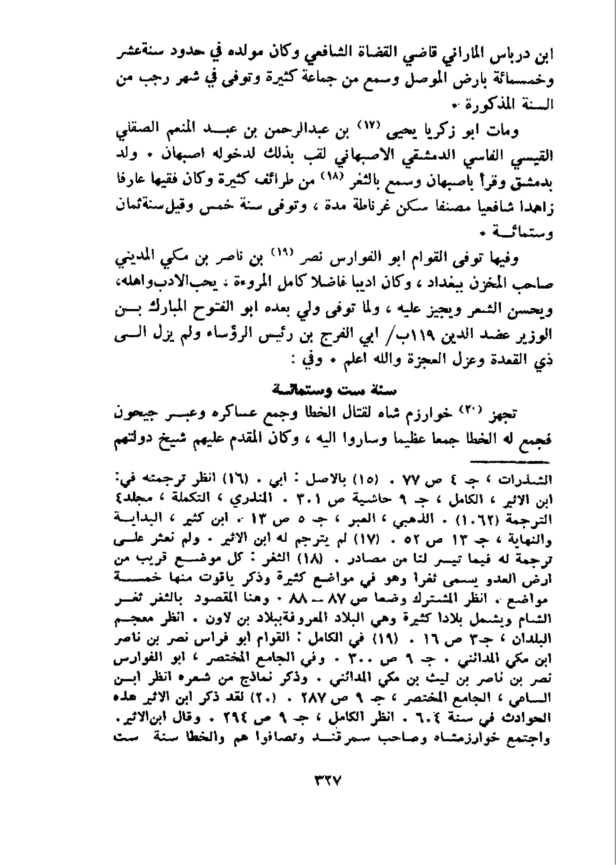 وفيها توفى القوام ابو الفوارس نصر 19 بن ناصر بن مكي المديني صاحب المخزن ببغداد، وكان اديبا فاضلا كامل المروءة، يحب الادب واهله، ويحسن الشعر ويجيز عليه، ولما توفى ولي بعده ابو الفتوح المبارك بن الوزير عضد الدين 119 ب/ابي الفرج بن رئيس الرؤساء ولم يزل الى ذي القعدة وعزل العجزة والله اعلم. وفي: